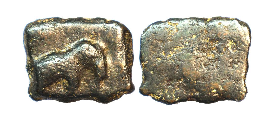 Ancient, Post Mauryan, Central India (1st Century BC), Copper Unit, 4.82 gms, uniface, Elephant to right, similar Pieper #404, very fine, scarce.