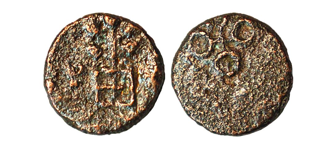 Ancient, Post Mauryan, Ujjain Region (1st-2nd Century BC), Copper Unit, 1.20 gms, Obv. Railed tree & taurine to left, Rev. ujjaini symbol, Pieper #772, fine, scarce.