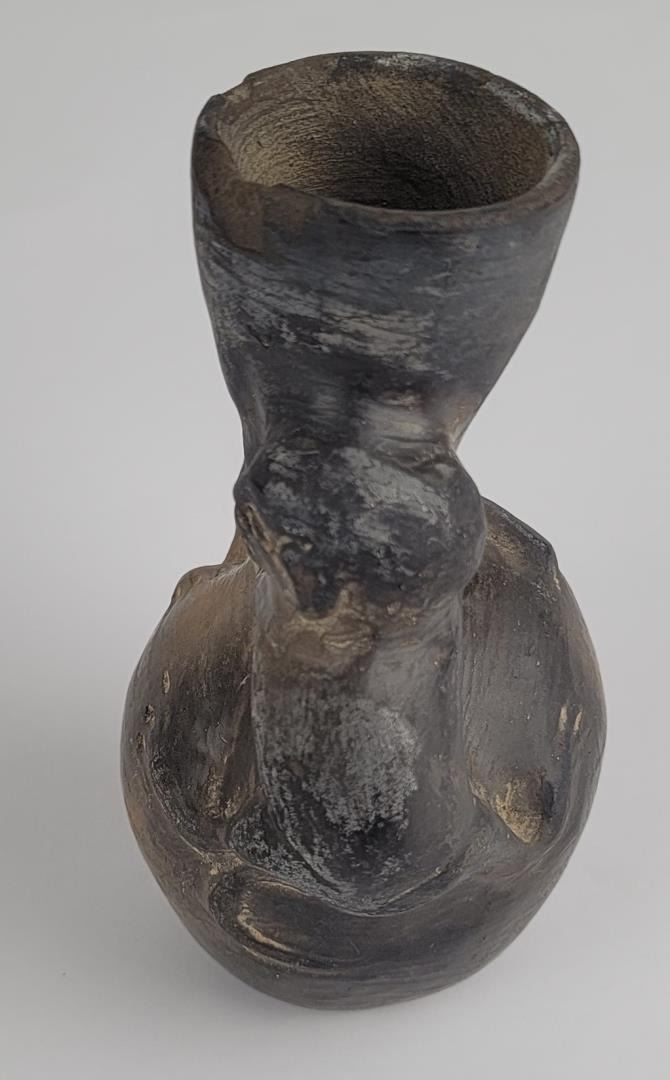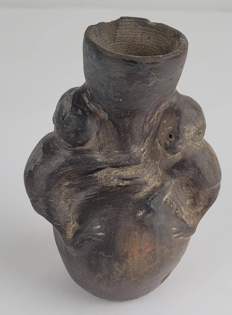 Very nice original piece. Passes all the tests for being authentic. Shows wonderful wear from handling. 6.125" tall.