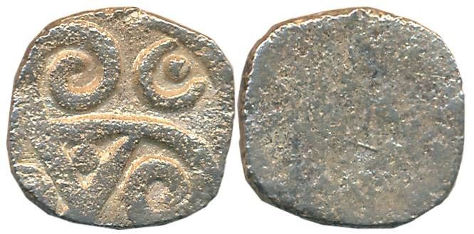 Punch Marked, Attributed to Kuru Janapada, Haryana Region, Silver 1/2 Karshapana, 1.48g, Uniface, “Babyal Hoard” type, Triangular with dot on obverse (Rajgor Series 21). Very fine+.