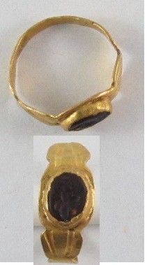 Ancient Roman Gold ring with black stone and intaglia of Eagle.