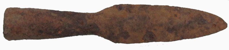 Ancient Roman Iron Spear Head. Shows typical wear from period and dug out of ground,  5,5'' in length.