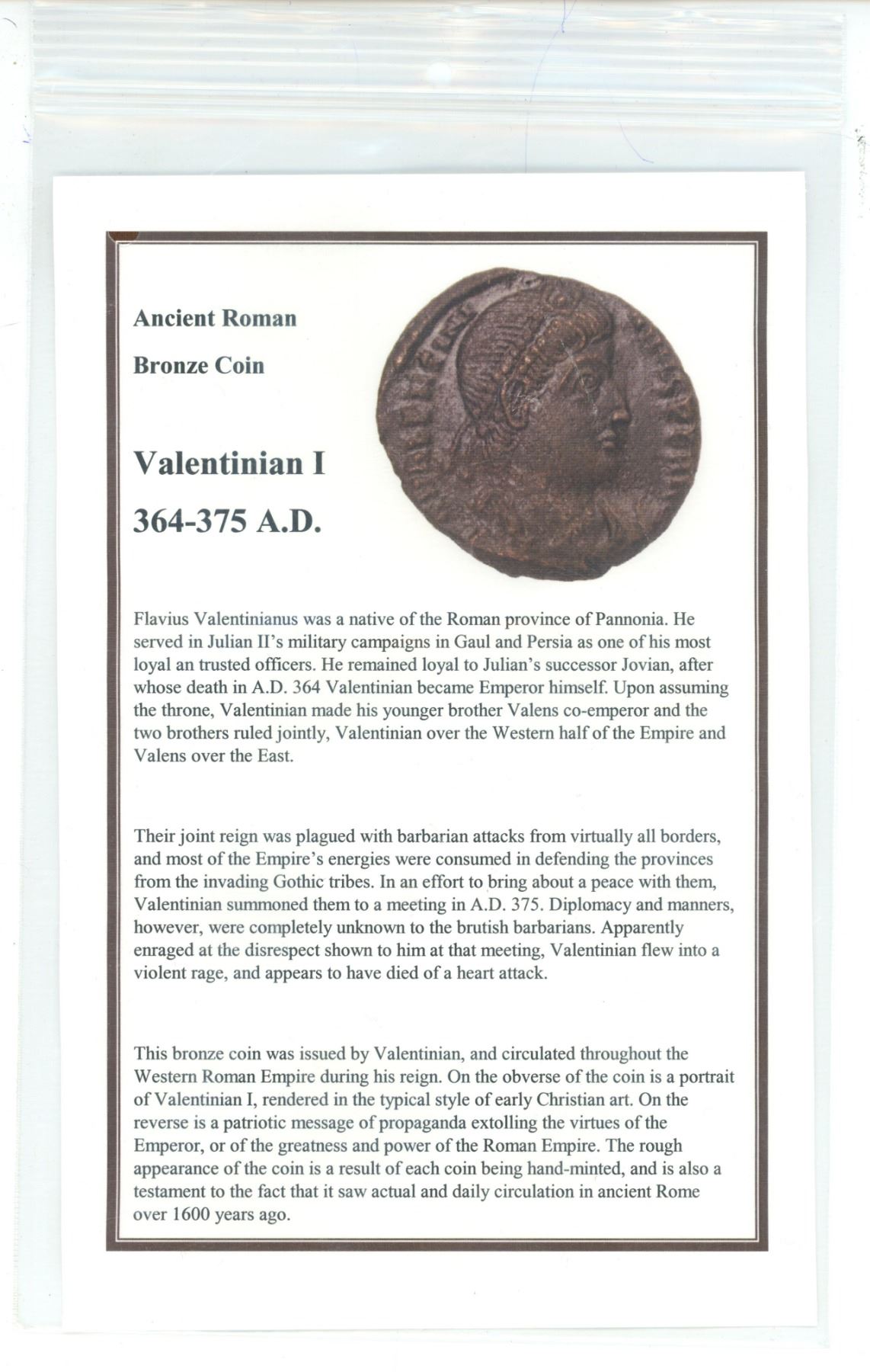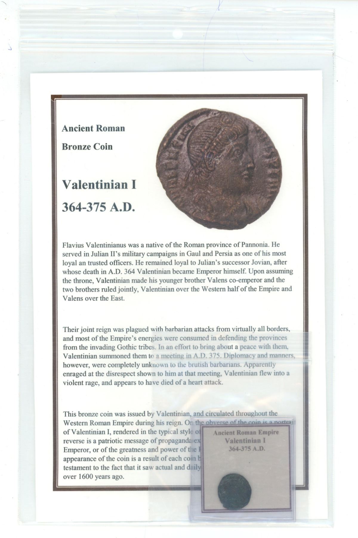Ancient Roman bronze coin - Valentinian I 364-375 AD
