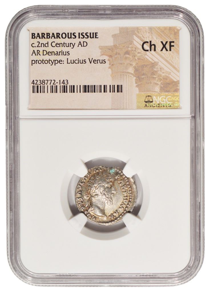 One Ancient Rome Barbarous Issue Denarius Coin NGC CH XF.