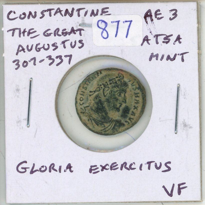 Ancient Rome. Constantine the Great as Augustus 307 – 337 AE 3 copper. Rev: Gloria Exercitus. Satsa Mint. VF.