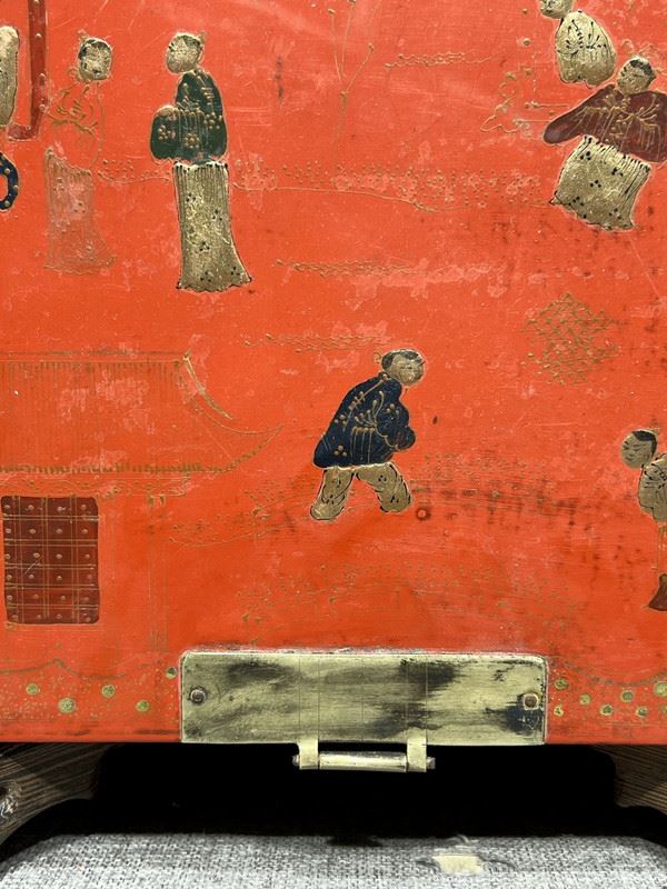 This storage box features a red base color, adorned with exquisite ancient figure patterns. The corners and edges are embellished with golden accents, adding a touch of elegance and historical charm. It is not only a functional item but also a piece of art, showcasing the craftsmanship of ancient times.