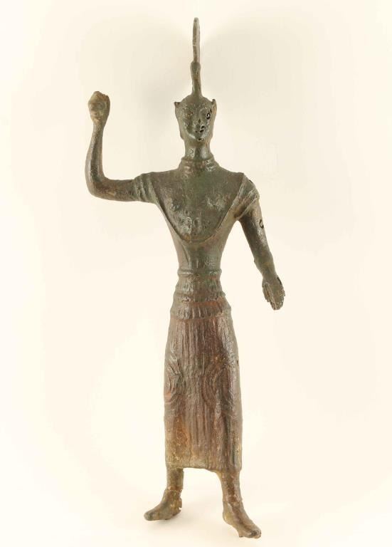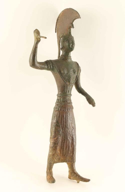 Warrior in armor with weapon. Heavy rust and patina. An antique piece 100 years old or more but we are not expert enough to authenticate as the Victoria and Albert Museum is full of 19th Century copies that passed experts. No warranty expressed or implied other than what is stated. From a prominent East Coast antiquities dealer's estate.