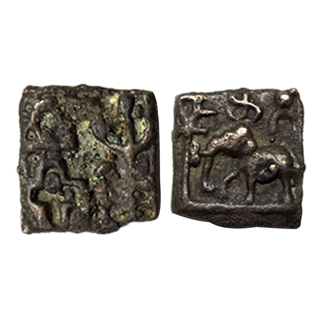 Ancient, Sunga Period, Central India, Cast Copper Unit, Obv: Elephant to left front of taurine, belo