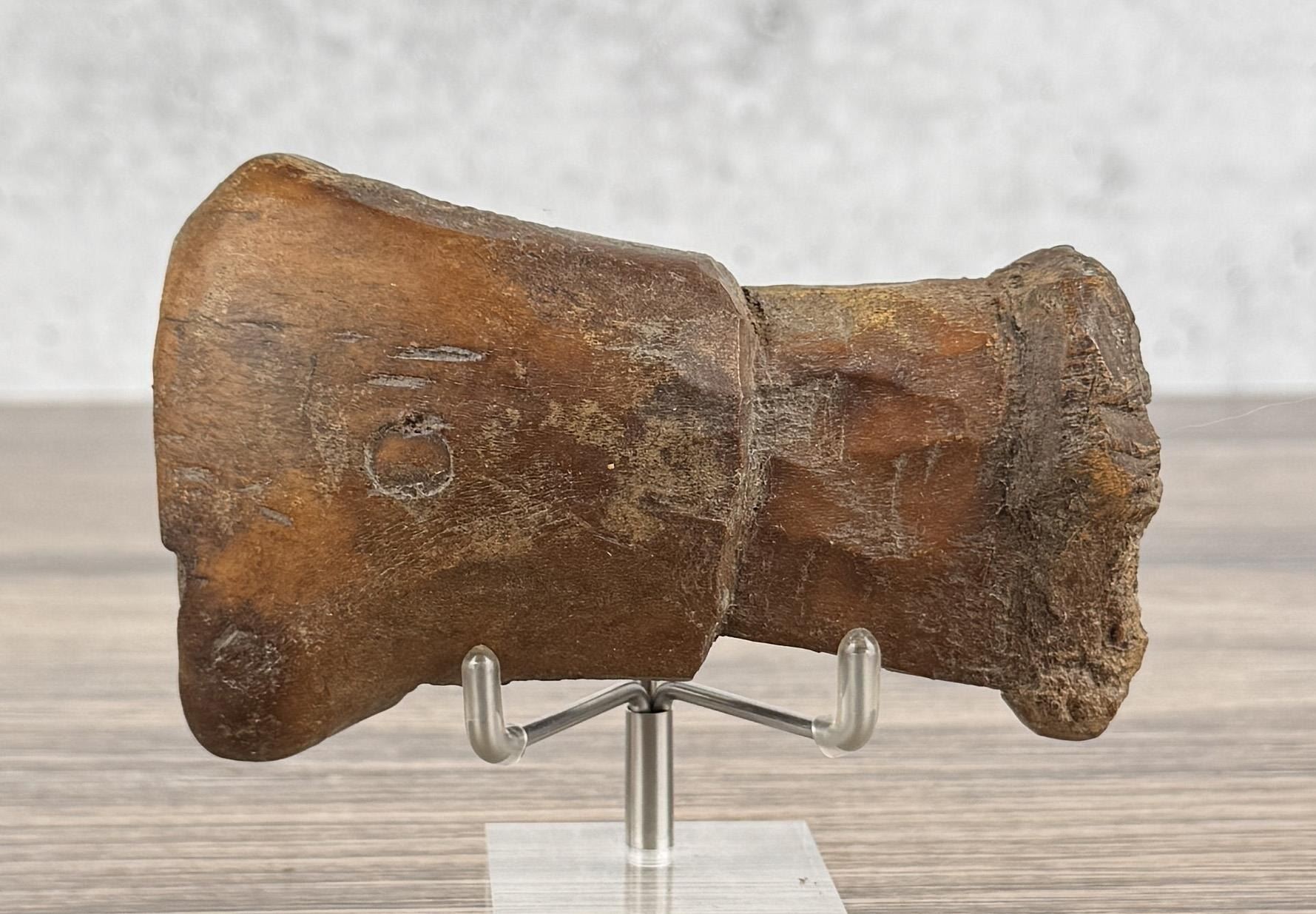 4 1/2" long. Carved walrus material. Native made prior to 1972. This item cannot be shipped to Oregon, California, Hawaii, New York, New Jersey, Internationally, or any other state that prohibits.