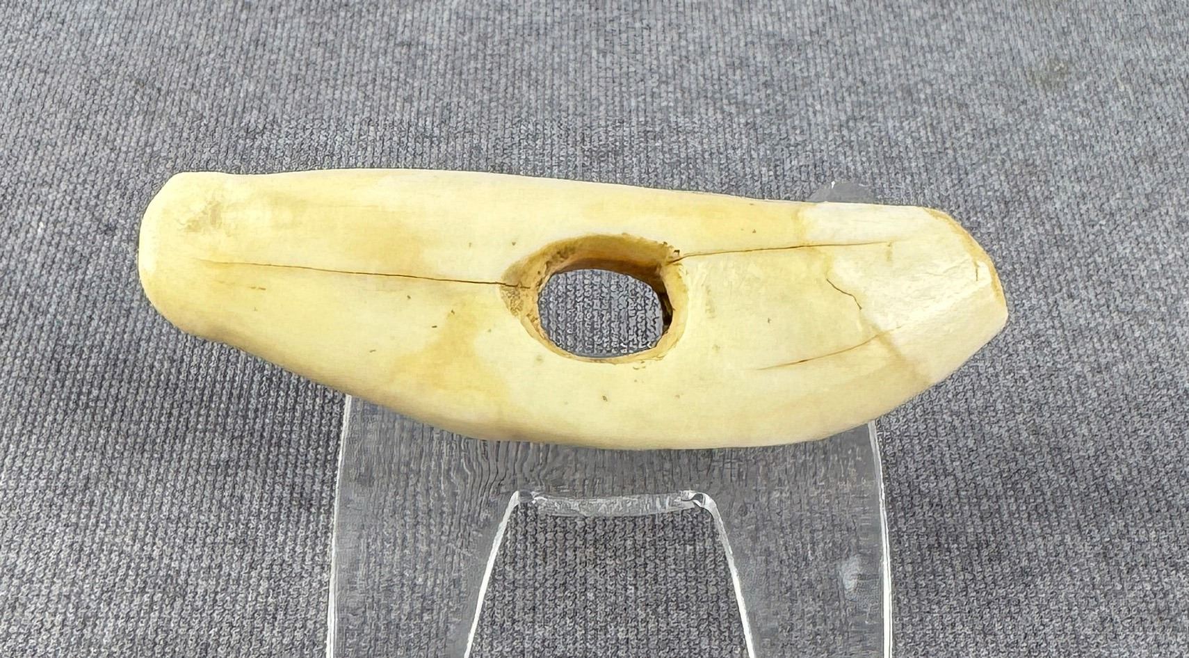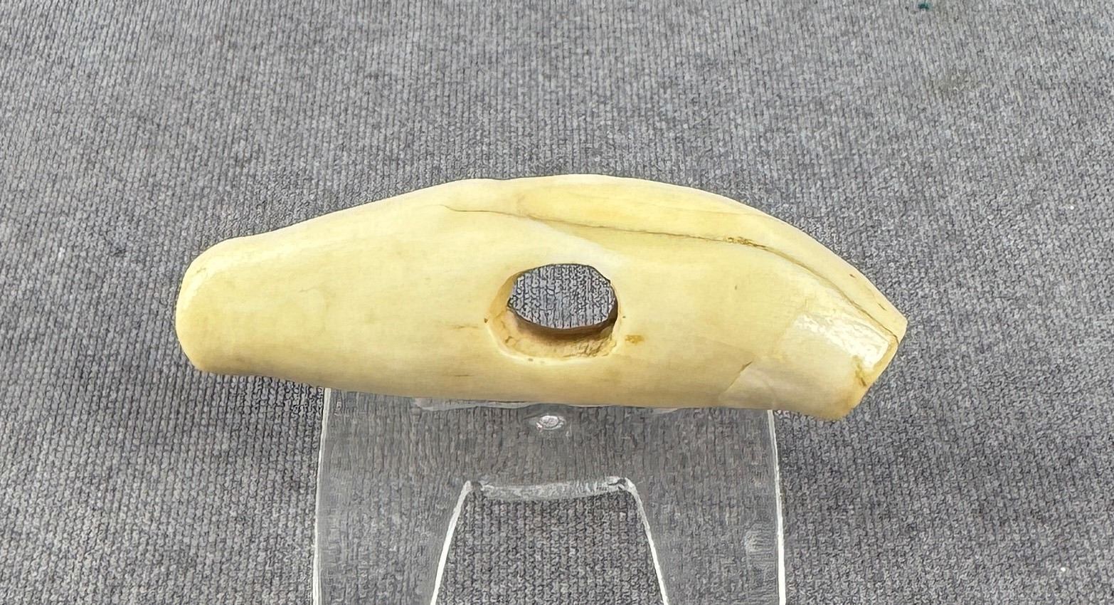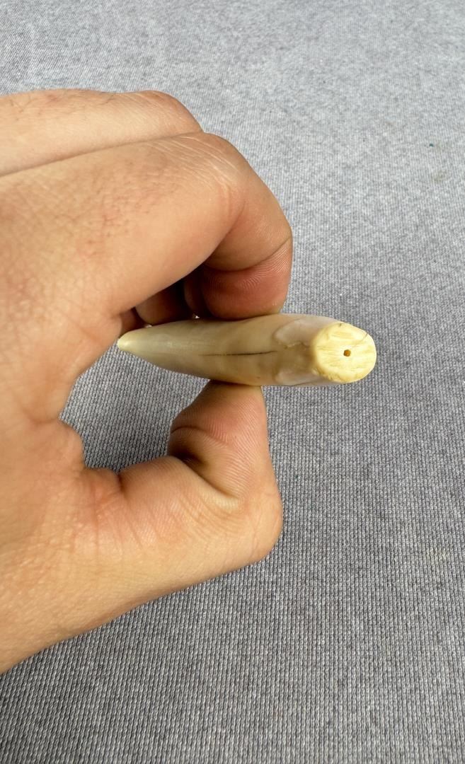 Made from a bear tooth. Only for sale where legal. No International Sales. Know your own laws. No sales to Alabama, California, Florida, Georgia, Mississippi, Kentucky, Massachusetts, Nebraska, North Dakota, Oklahoma, Oregon, Virginia, Washington, West Virginia.