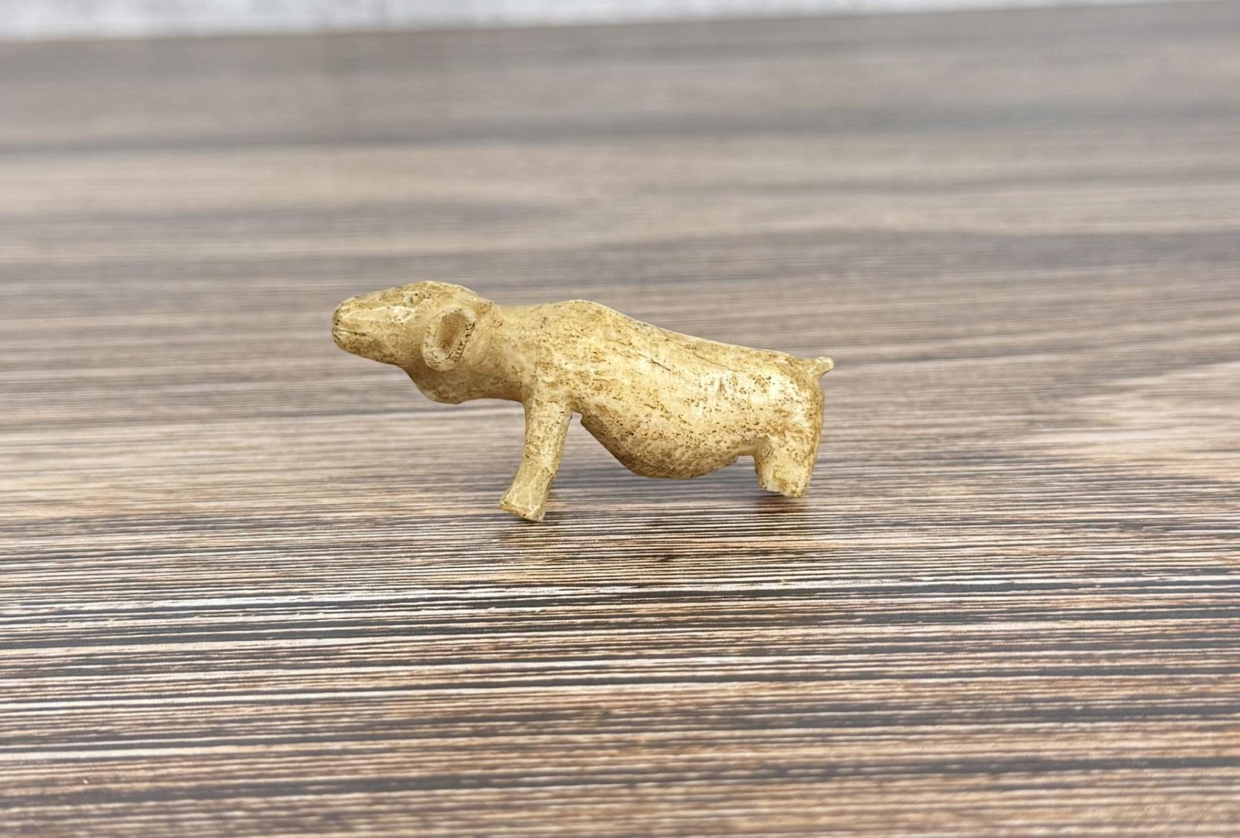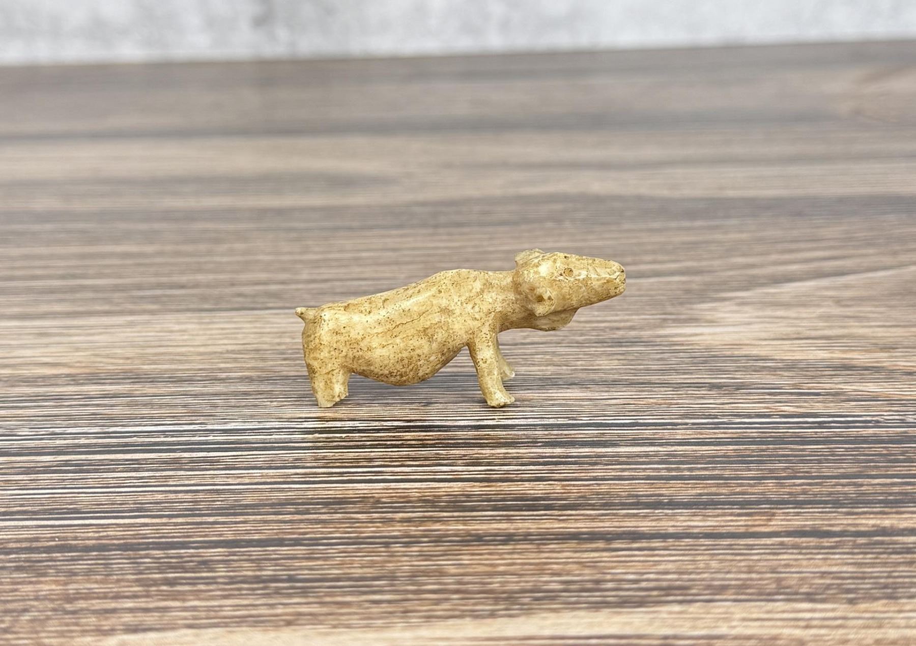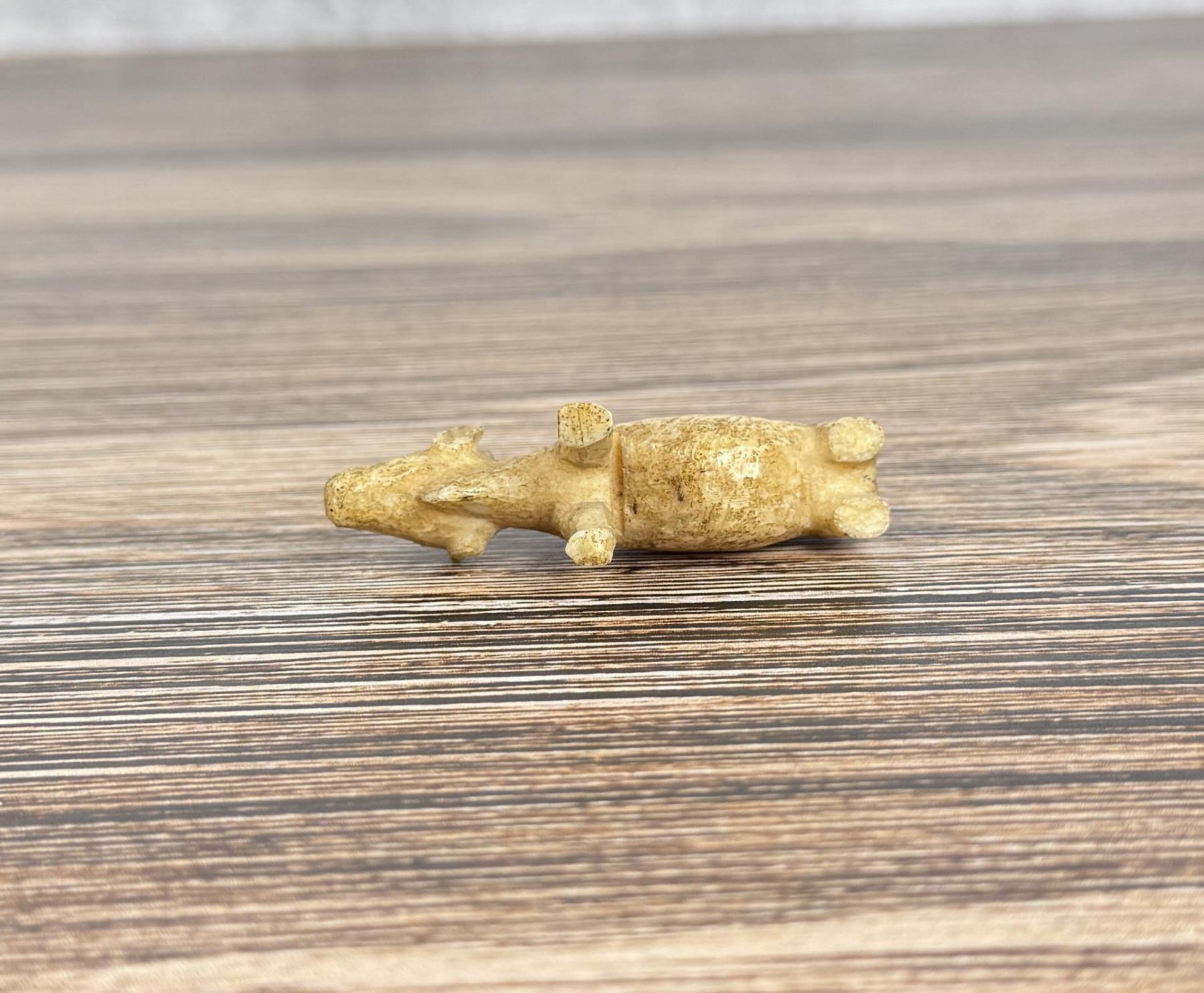 2 3/8" by 1" by 5/8". Carved walrus material. Native made prior to 1972. This item cannot be shipped to Oregon, California, Hawaii, New York, New Jersey, Internationally, or any other state that prohibits.