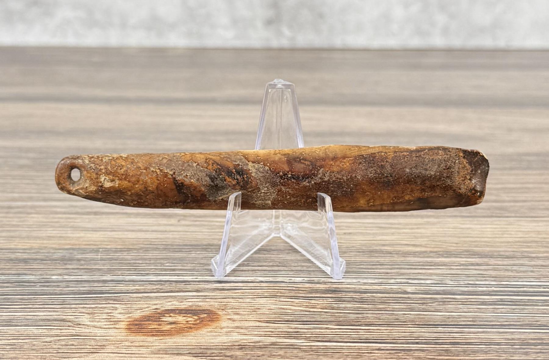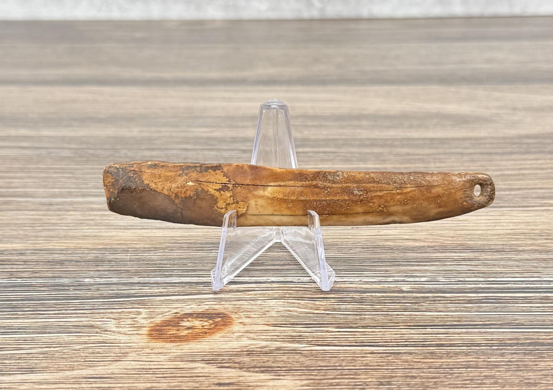 5 1/4" long. Carved walrus material. Native made prior to 1972. This item cannot be shipped to Oregon, California, Hawaii, New York, New Jersey, Internationally, or any other state that prohibits.