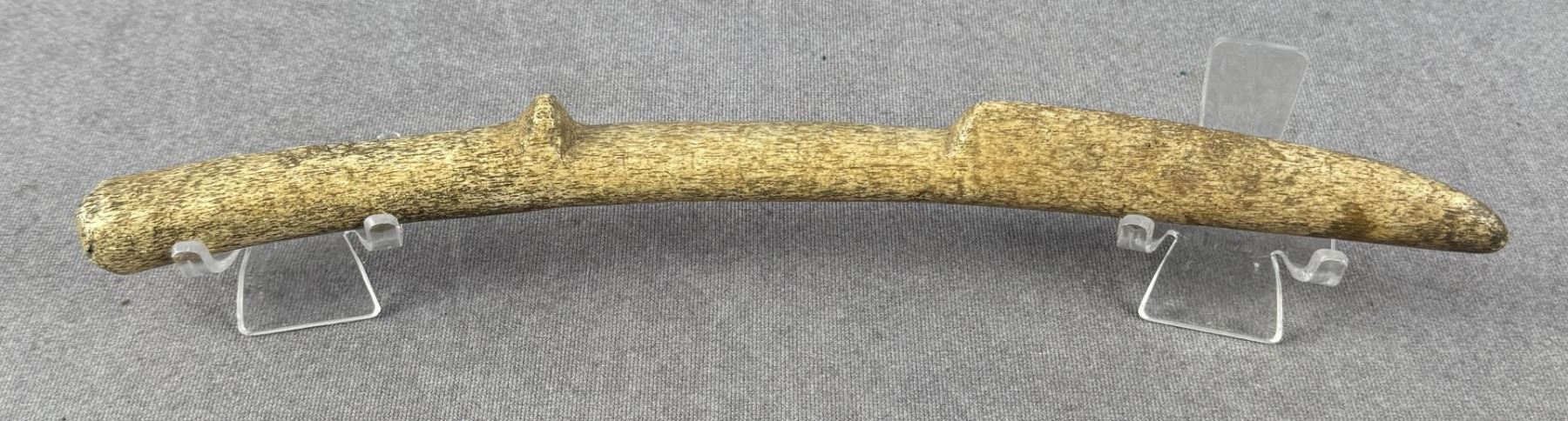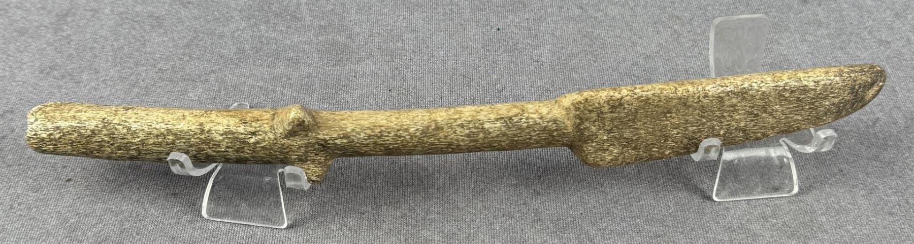11 1/2" long. Made from Whale Bone. Native made prior to 1972.