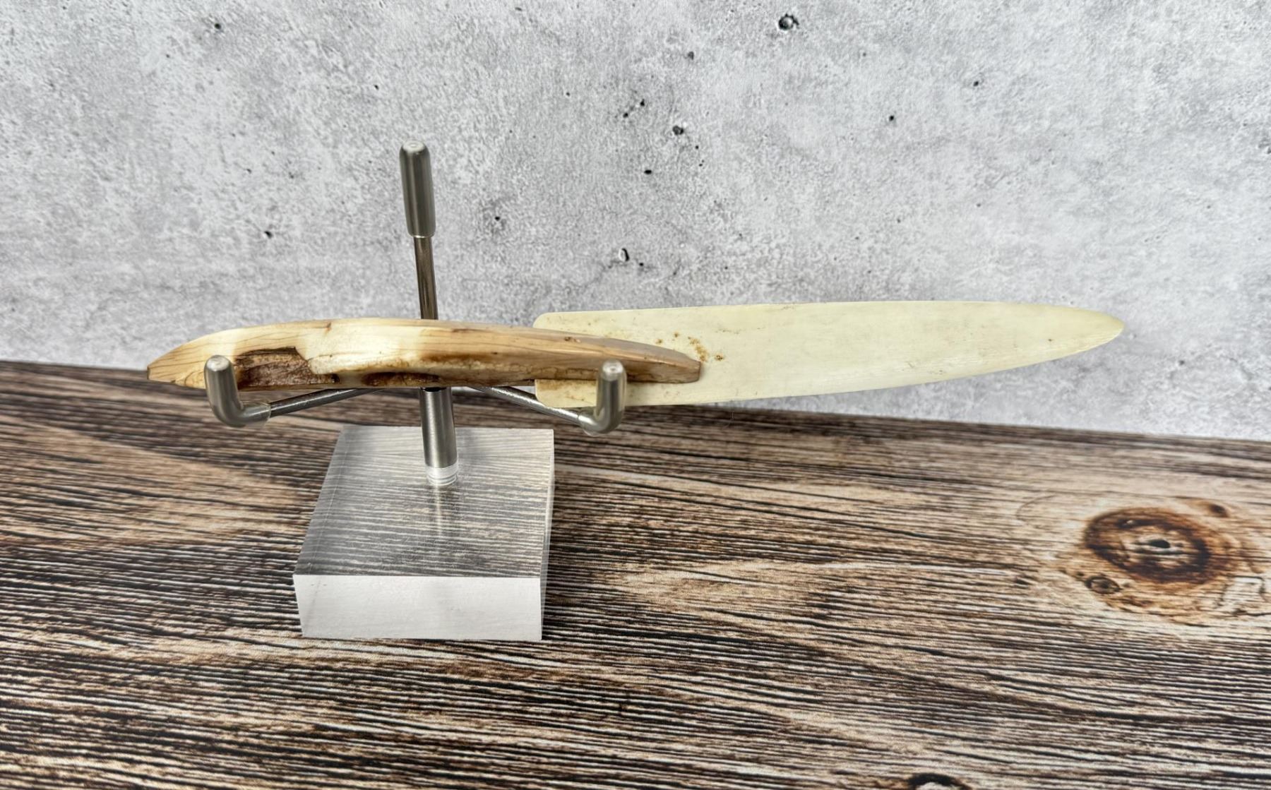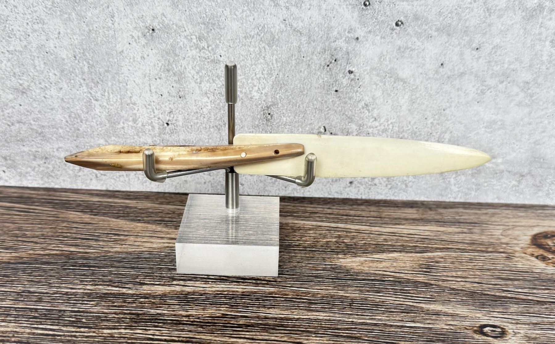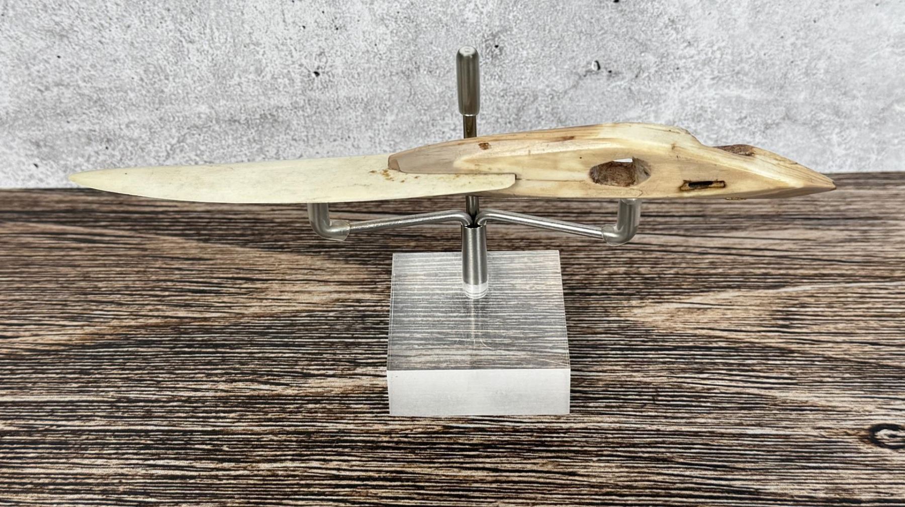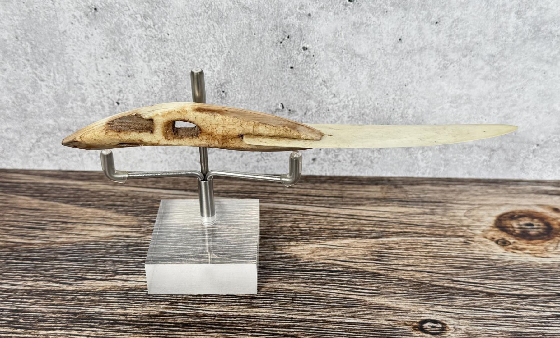 Replaced blade. 6 3/8" long. Carved walrus material. Native made prior to 1972. This item cannot be shipped to Oregon, California, Hawaii, New York, New Jersey, Internationally, or any other state that prohibits.