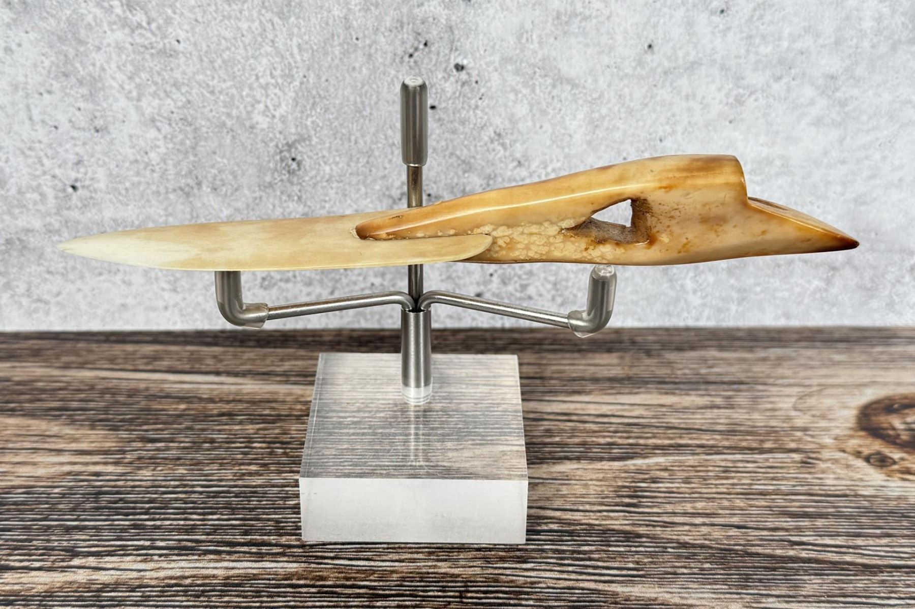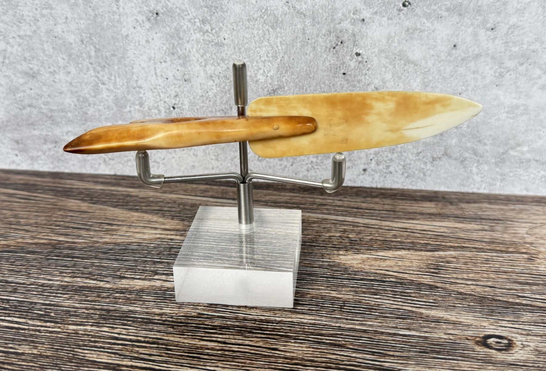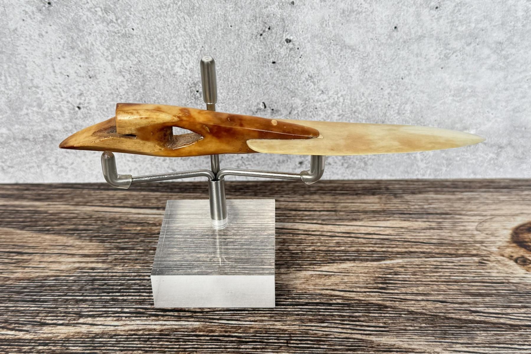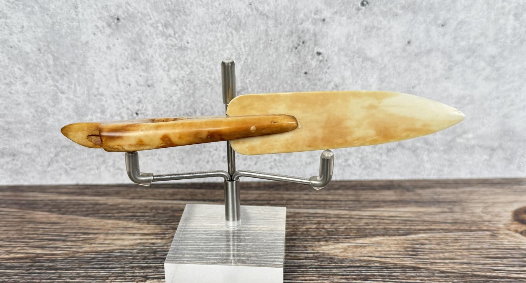 Replaced blade. 5 1/2" long. Carved walrus material. Native made prior to 1972. This item cannot be shipped to Oregon, California, Hawaii, New York, New Jersey, Internationally, or any other state that prohibits.