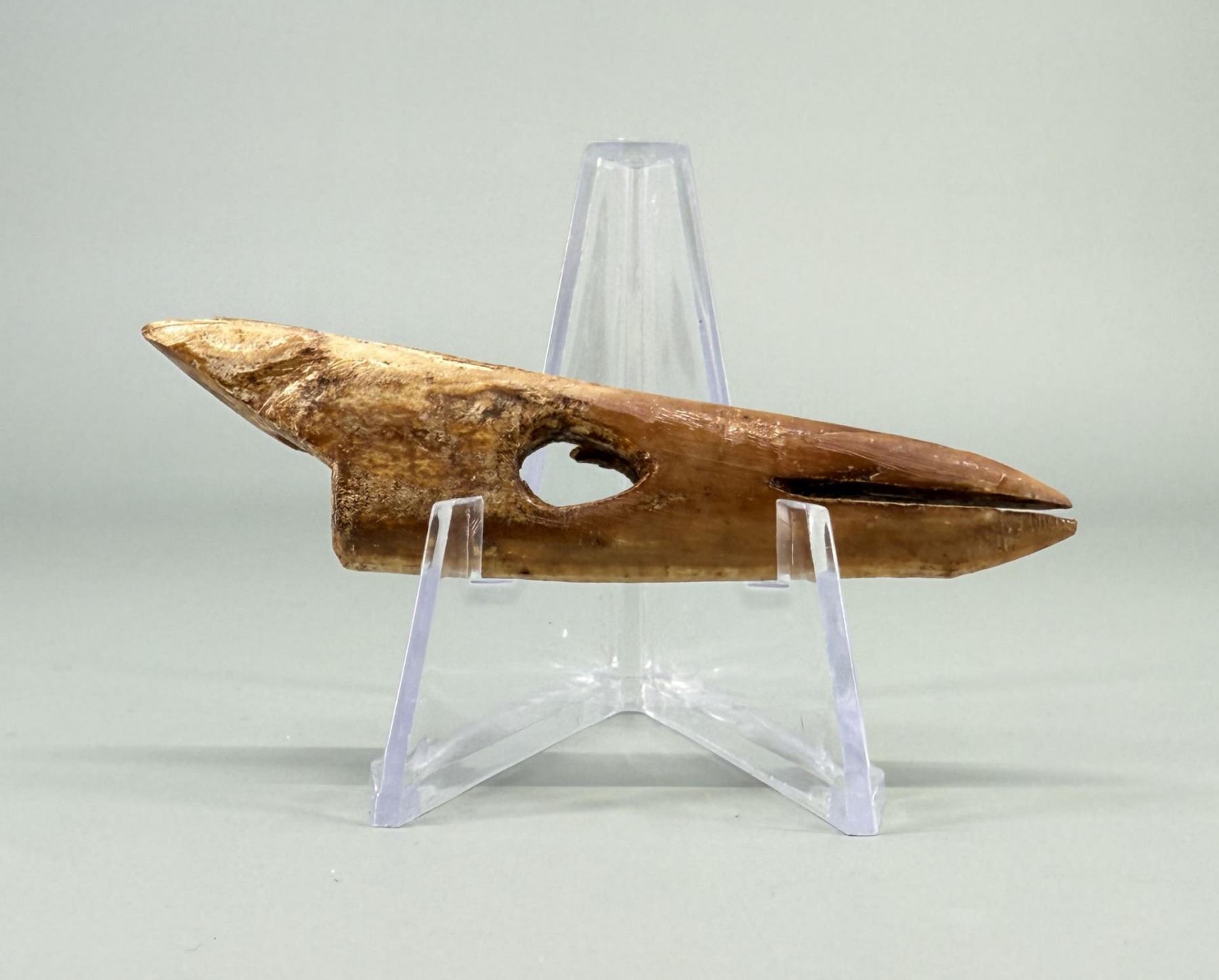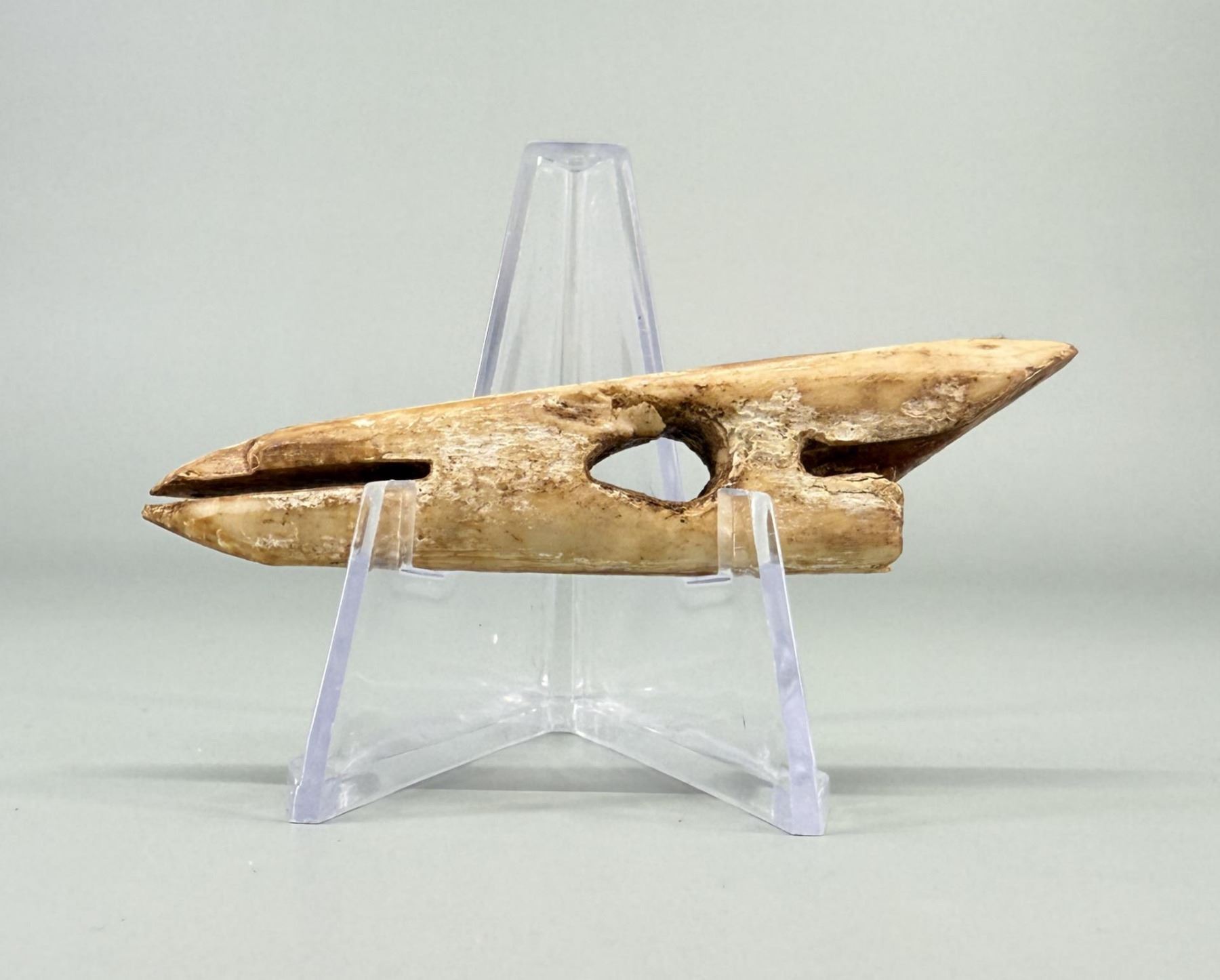 3 1/8" long. Carved walrus material. Native made prior to 1972. This item cannot be shipped to Oregon, California, Hawaii, New York, New Jersey, Internationally, or any other state that prohibits.