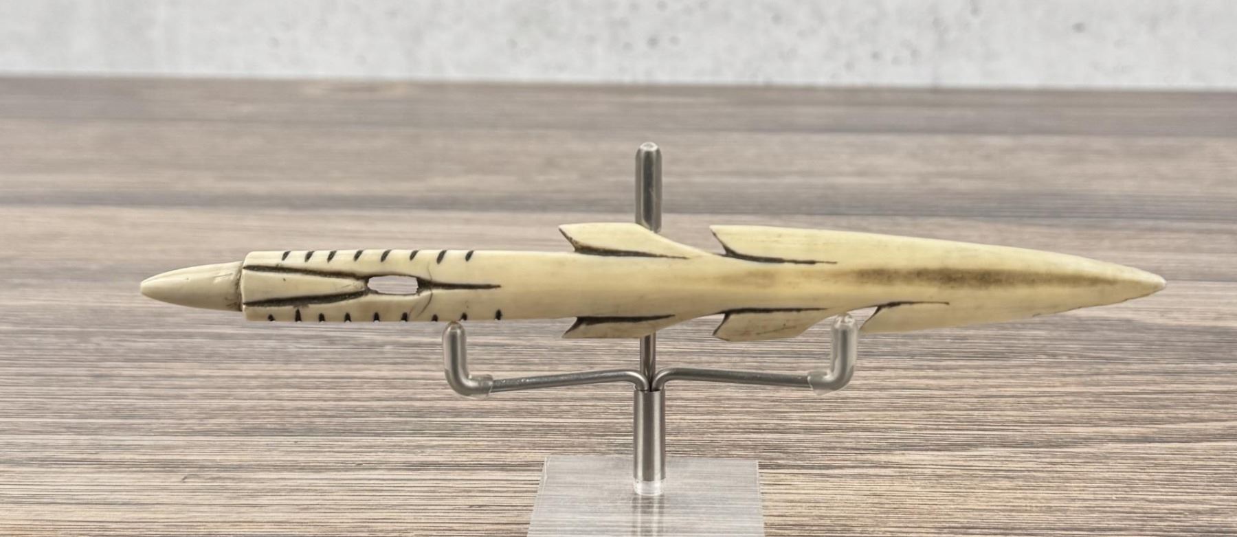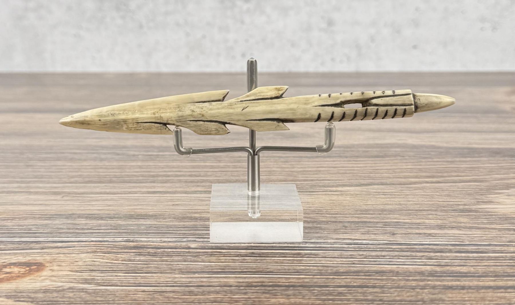 7" long. Carved walrus material. Native made prior to 1972. This item cannot be shipped to Oregon, California, Hawaii, New York, New Jersey, Internationally, or any other state that prohibits.