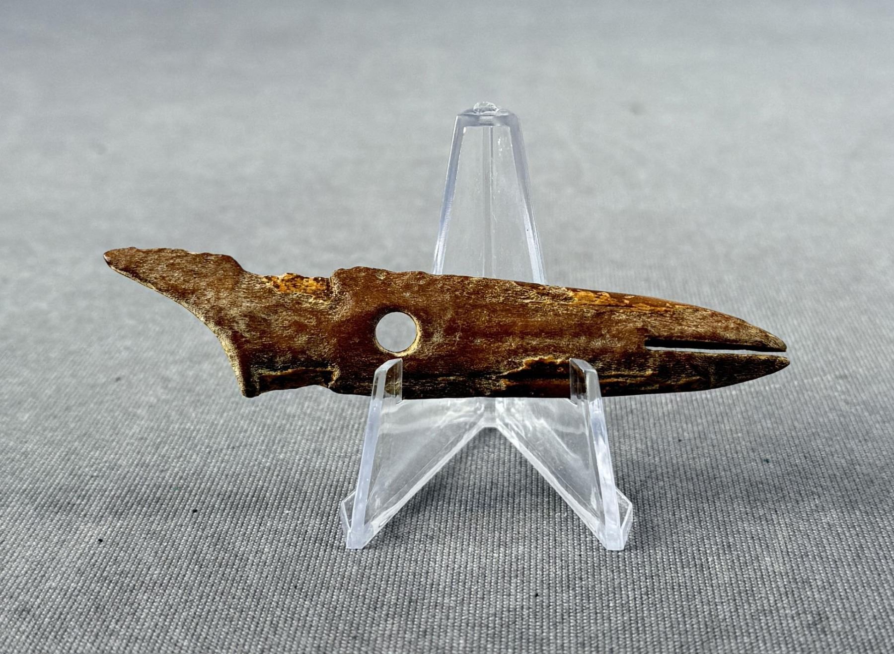 3 7/8" long. Carved walrus material. Native made prior to 1972. This item cannot be shipped to Oregon, California, Hawaii, New York, New Jersey, Internationally, or any other state that prohibits.
