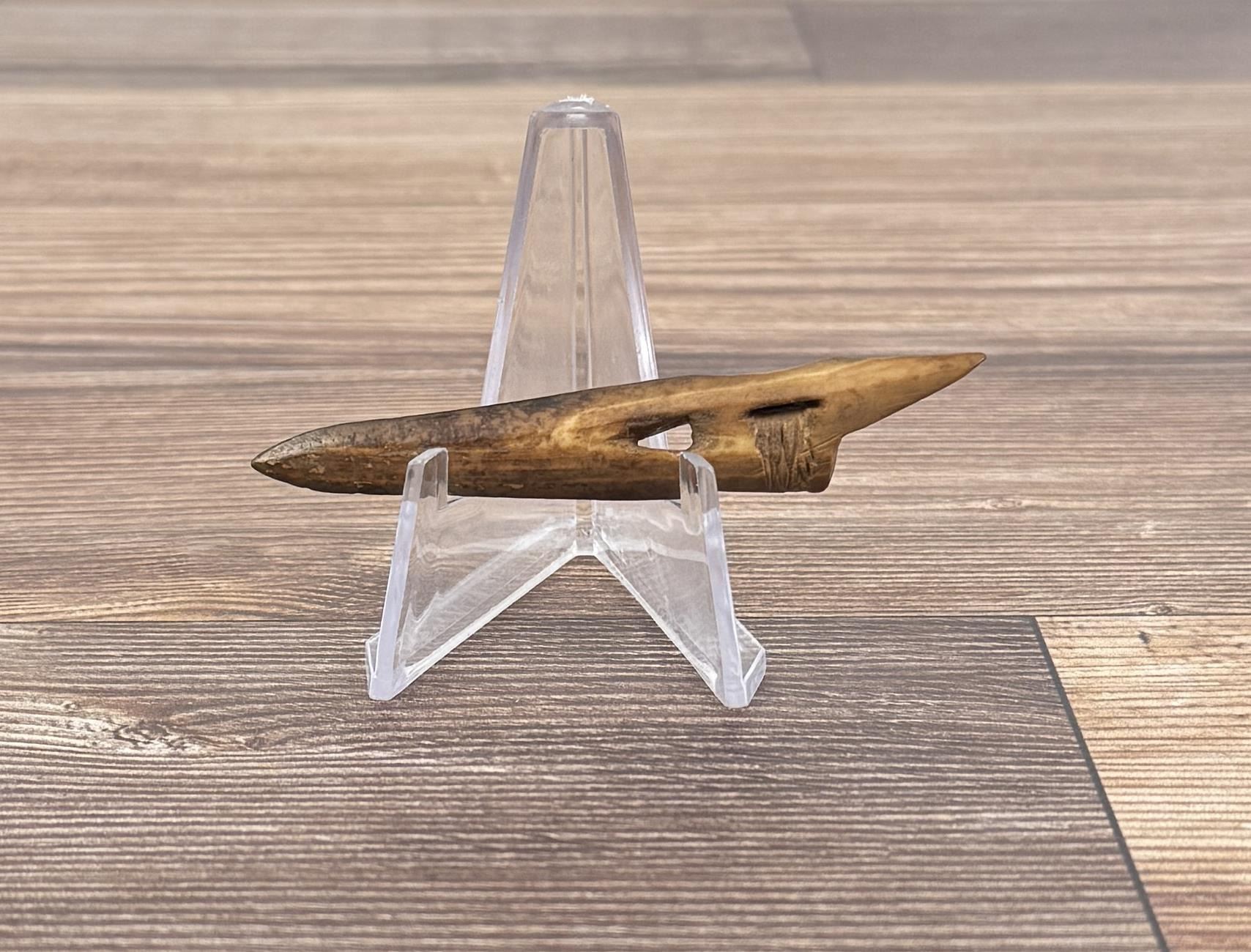 3" long. Carved walrus material. Native made prior to 1972. This item cannot be shipped to Oregon, California, Hawaii, New York, New Jersey, Internationally, or any other state that prohibits.