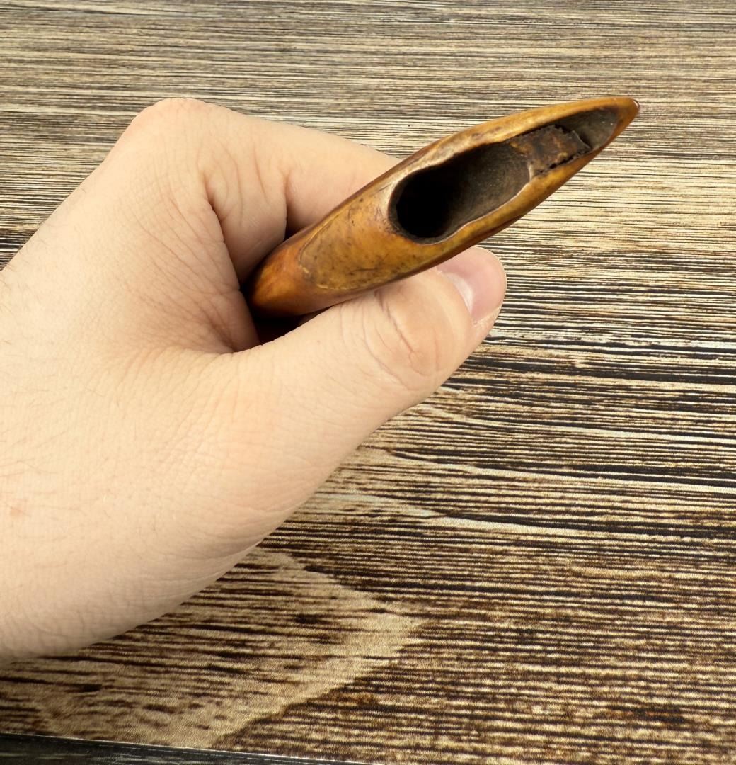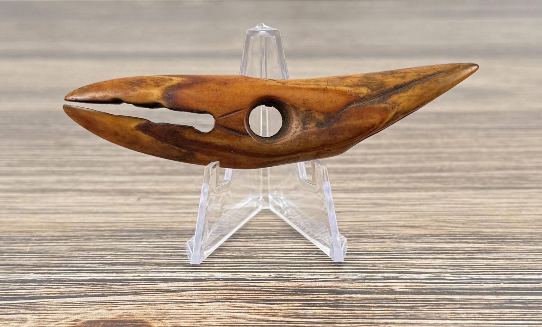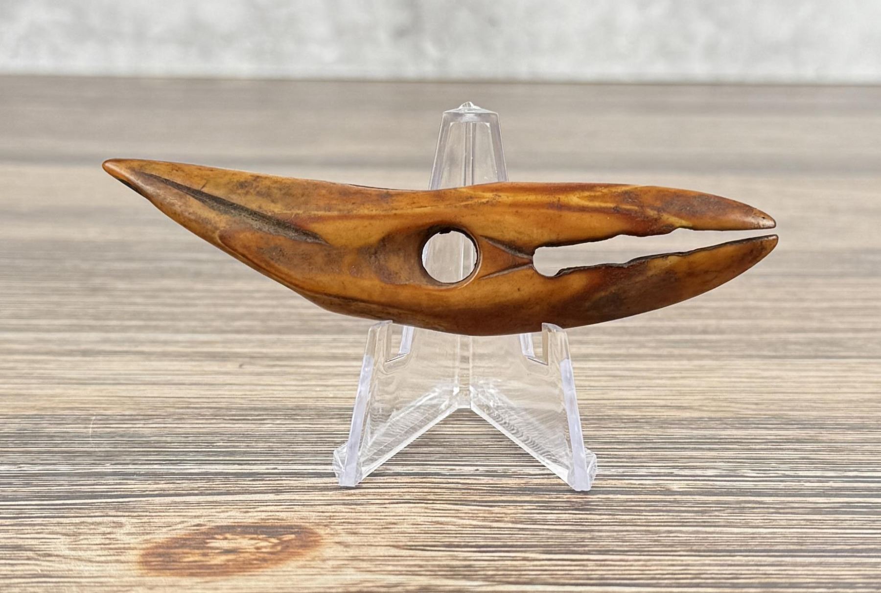 4 1/4" long. Carved walrus material. Native made prior to 1972. This item cannot be shipped to Oregon, California, Hawaii, New York, New Jersey, Internationally, or any other state that prohibits.