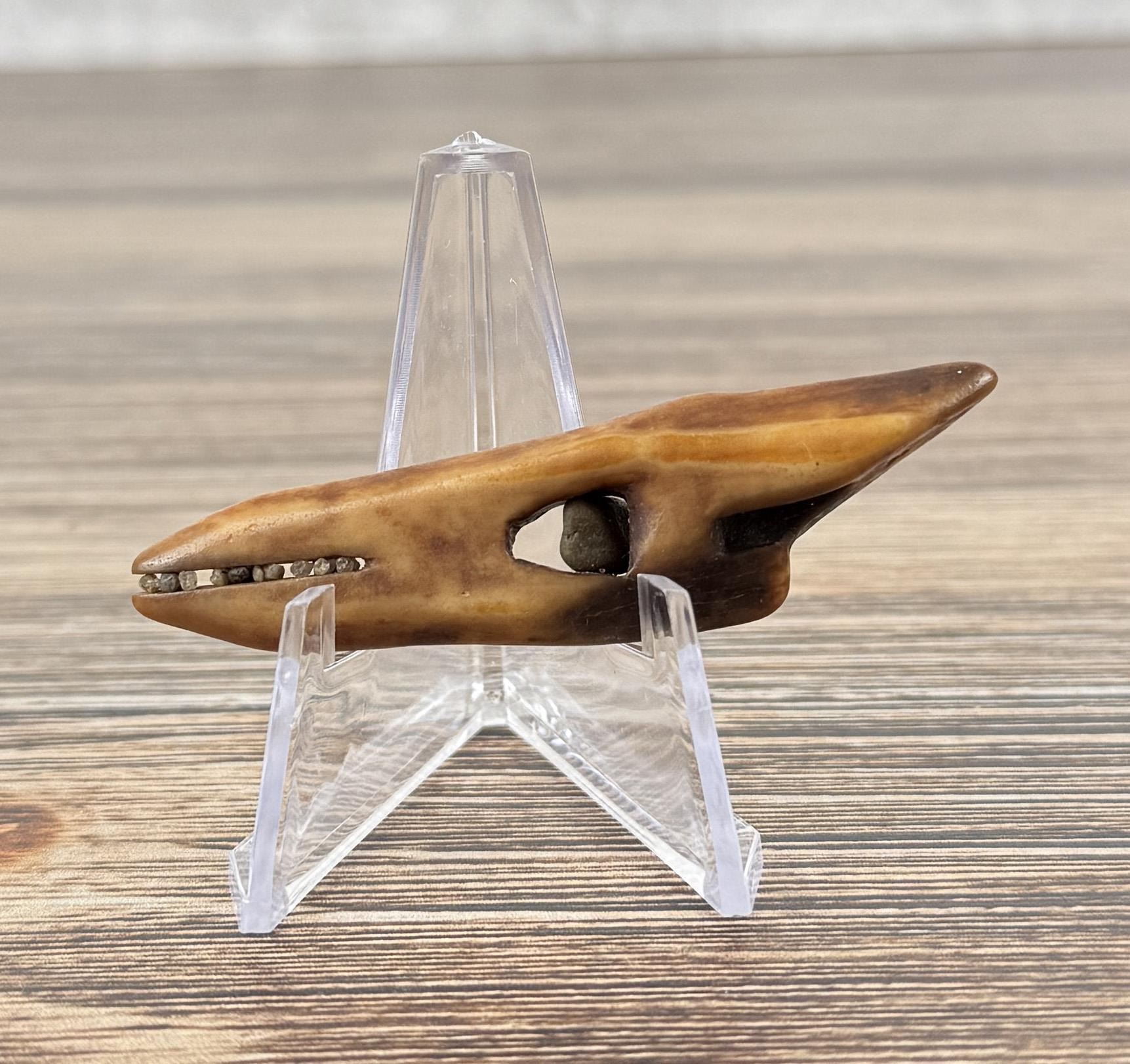 2 3/4" long. Carved walrus material. Native made prior to 1972. This item cannot be shipped to Oregon, California, Hawaii, New York, New Jersey, Internationally, or any other state that prohibits.