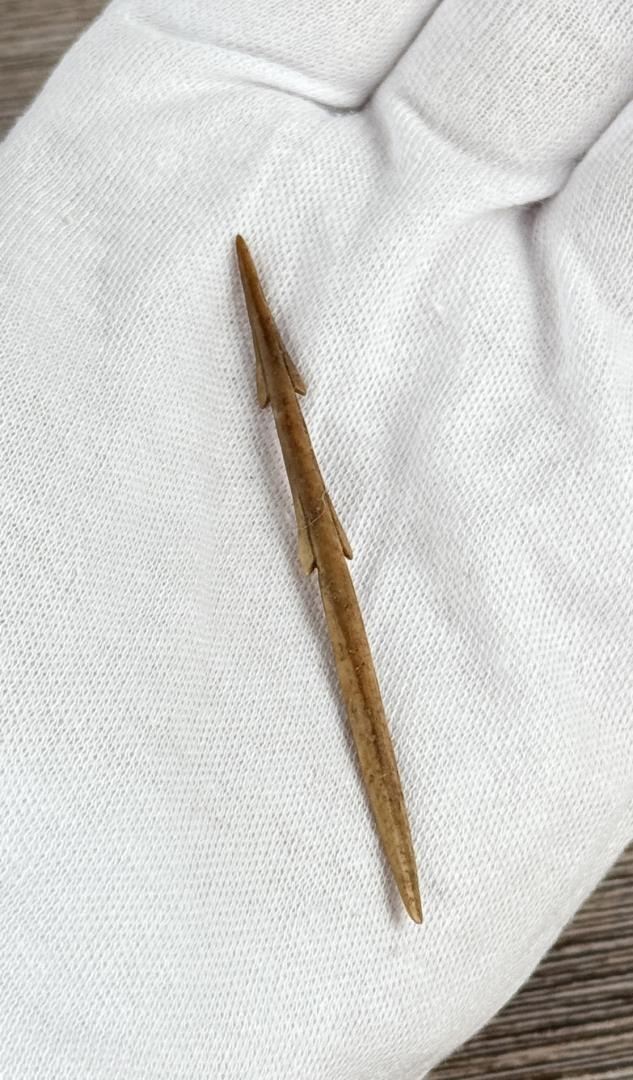 2 3/4" long. Carved walrus material. Native made prior to 1972. This item cannot be shipped to Oregon, California, Hawaii, New York, New Jersey, Internationally, or any other state that prohibits.