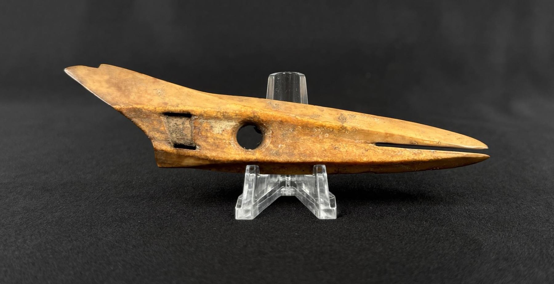 4 3/4" long. Carved walrus material. Native made prior to 1972. This item cannot be shipped to Oregon, California, Hawaii, New York, New Jersey, Internationally, or any other state that prohibits.