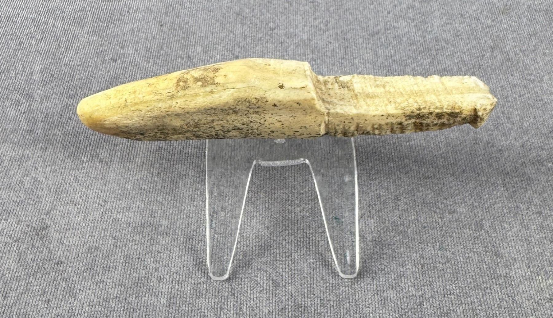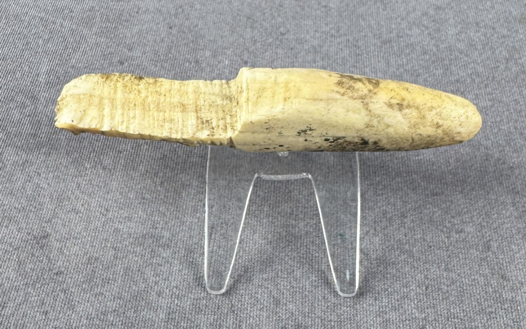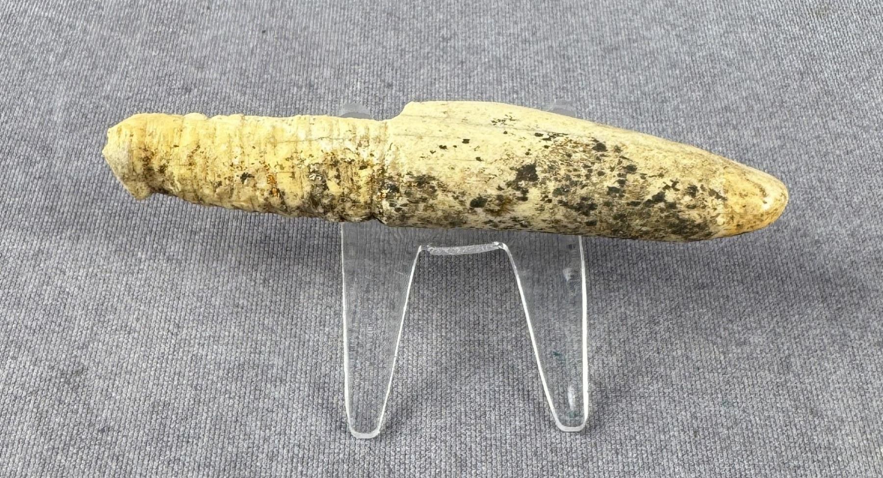 4 3/4" long. Carved walrus material. Native made prior to 1972. This item cannot be shipped to Oregon, California, Hawaii, New York, New Jersey, Internationally, or any other state that prohibits.