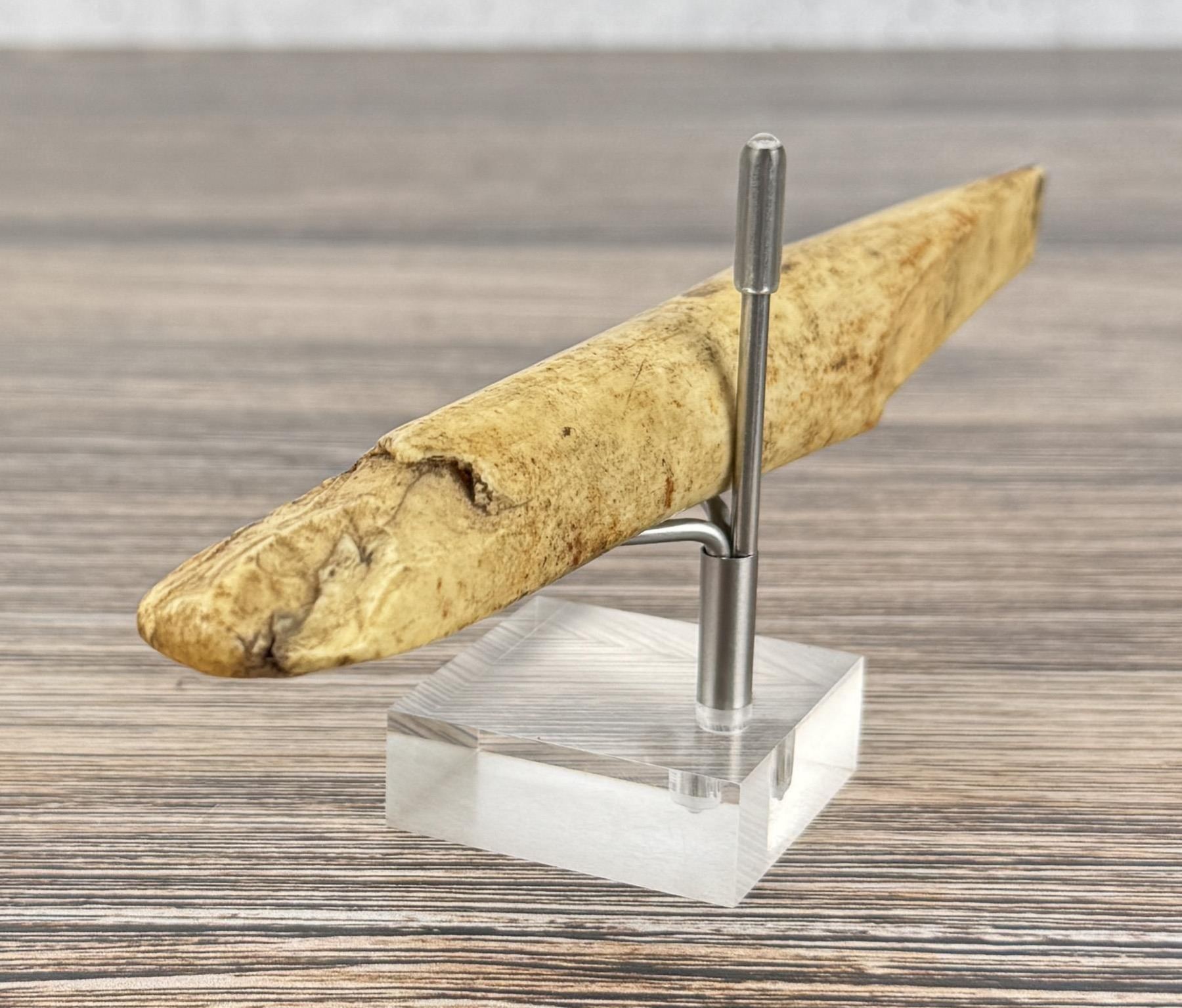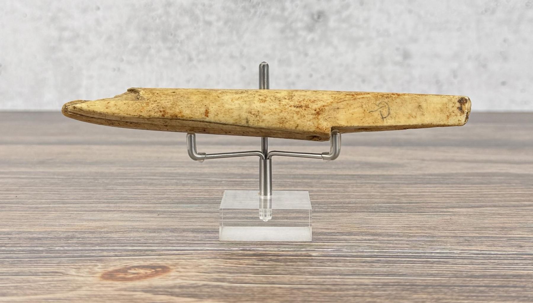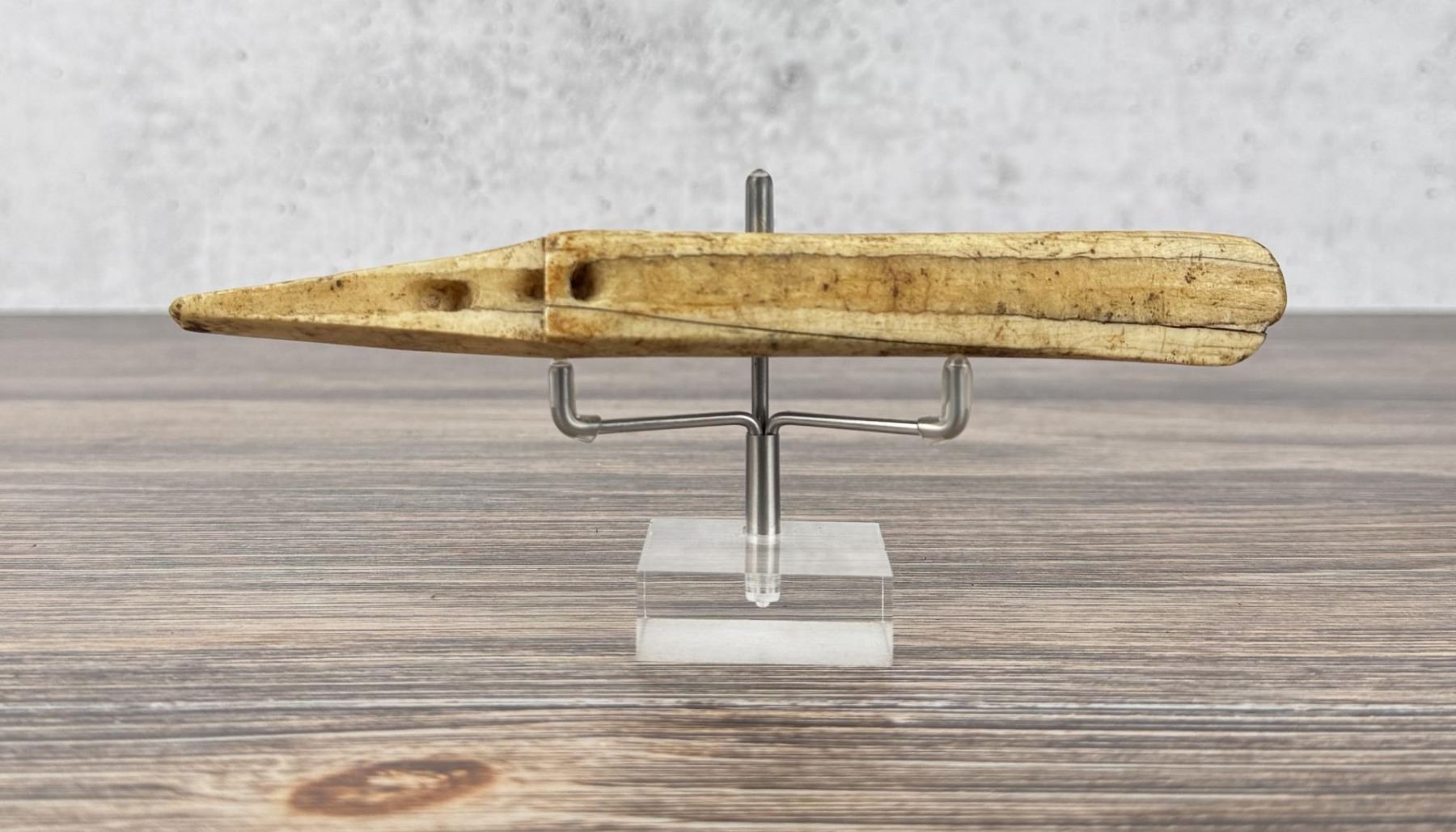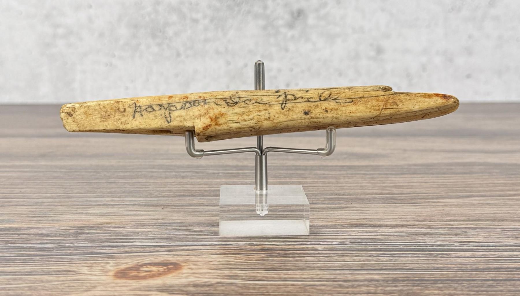 7 1/8" long. Carved walrus material. Native made prior to 1972. This item cannot be shipped to Oregon, California, Hawaii, New York, New Jersey, Internationally, or any other state that prohibits.