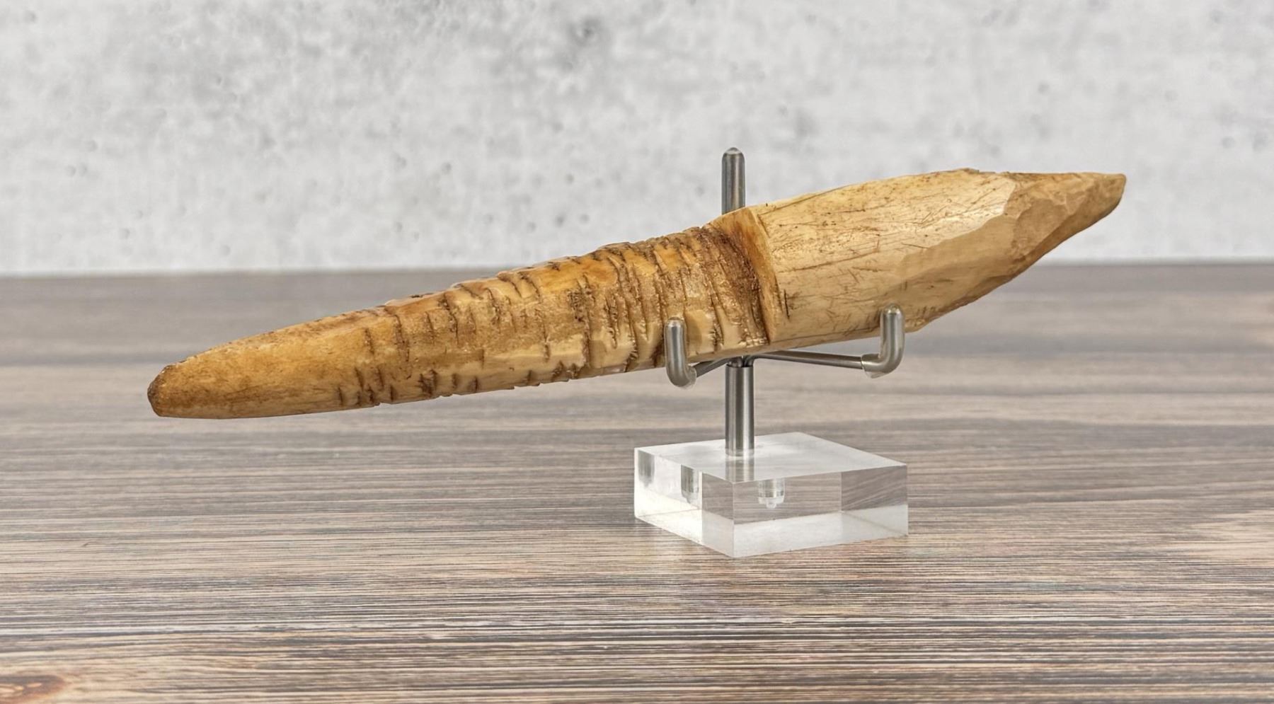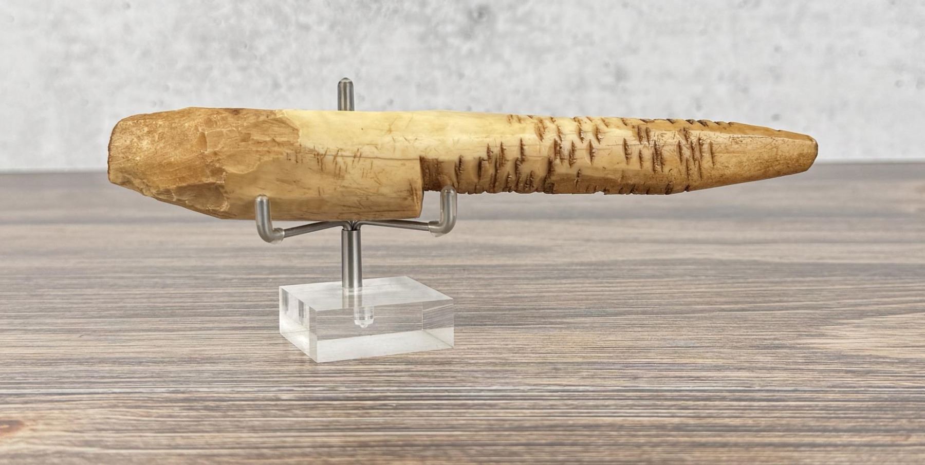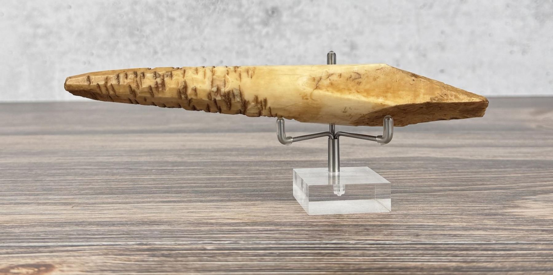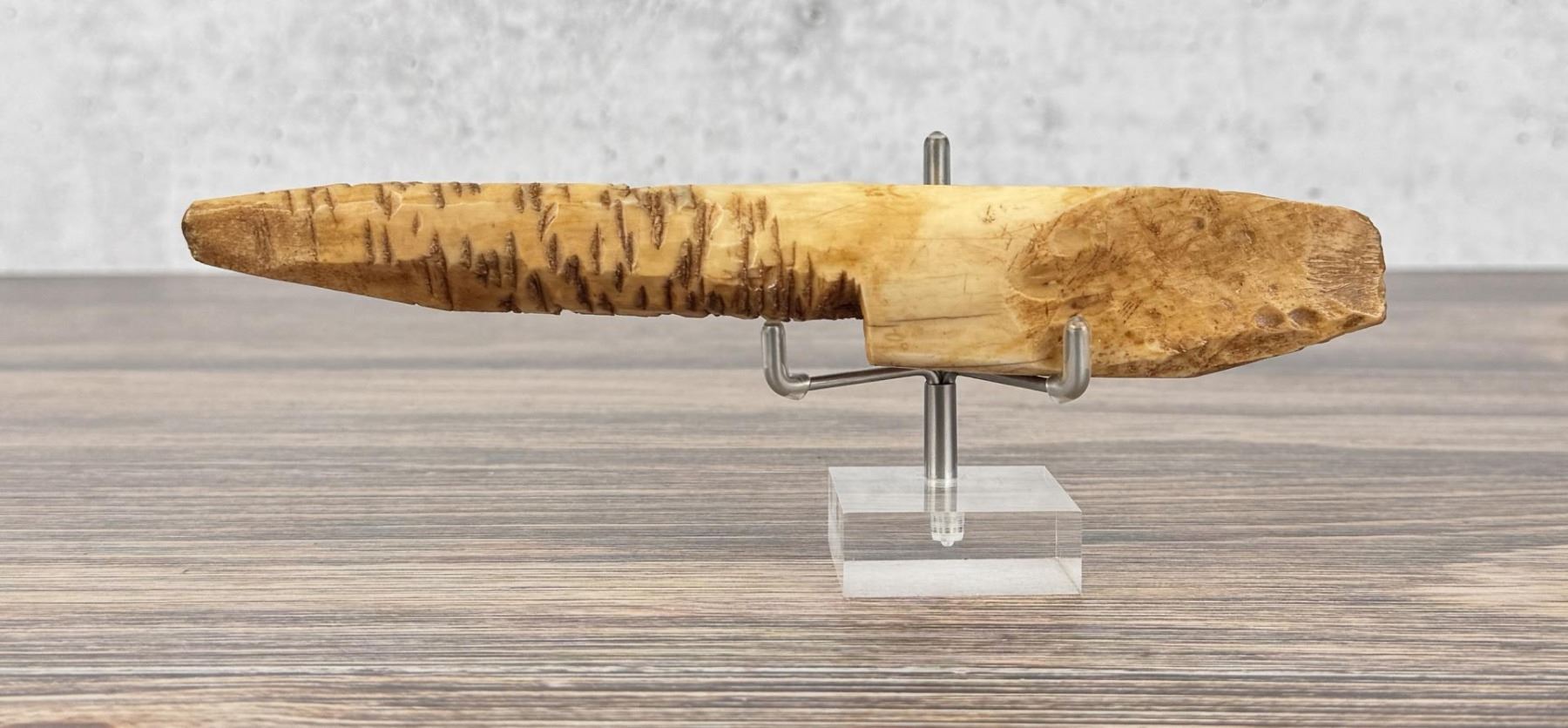 8" long. Carved walrus material. Native made prior to 1972. This item cannot be shipped to Oregon, California, Hawaii, New York, New Jersey, Internationally, or any other state that prohibits.