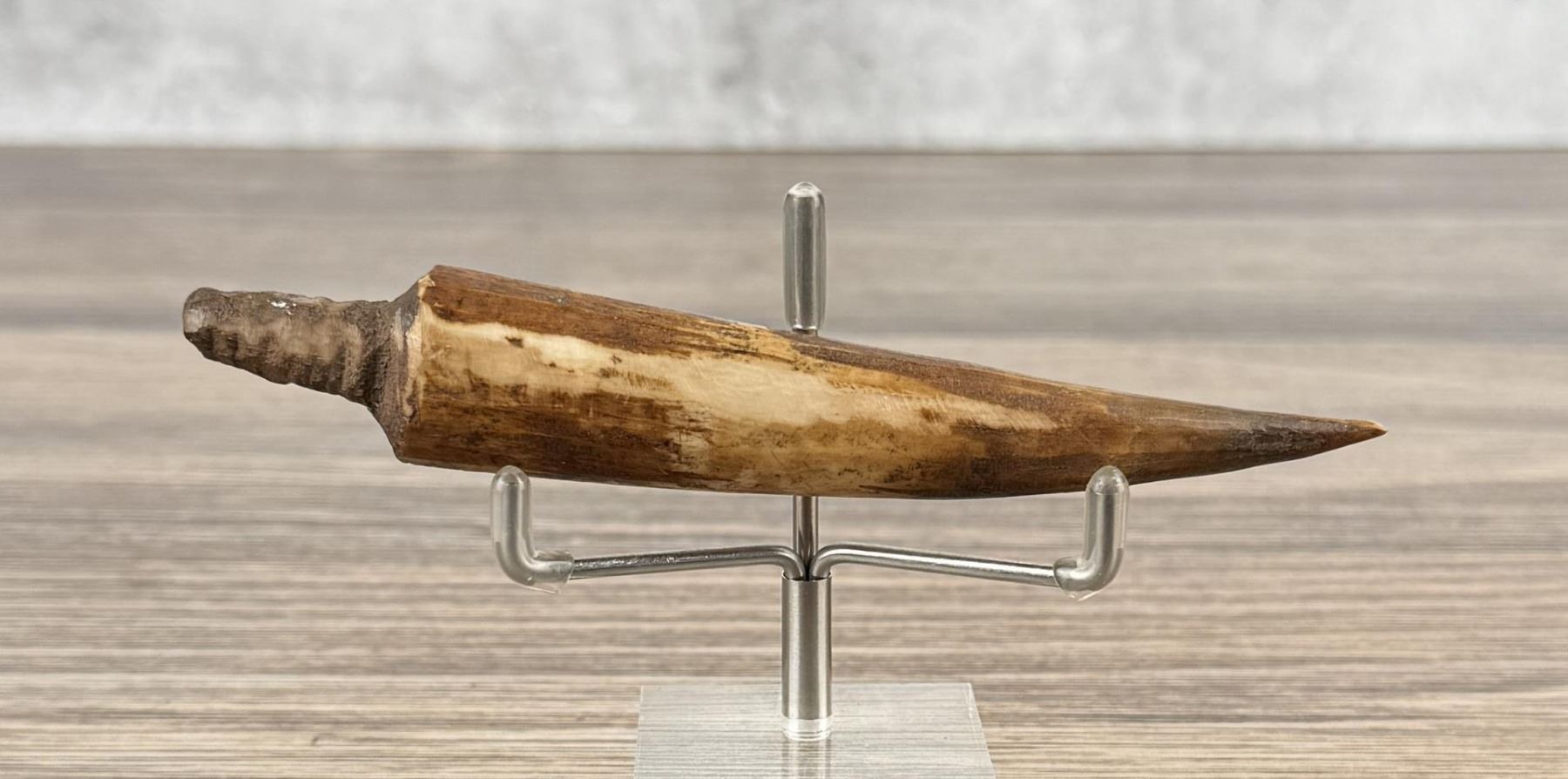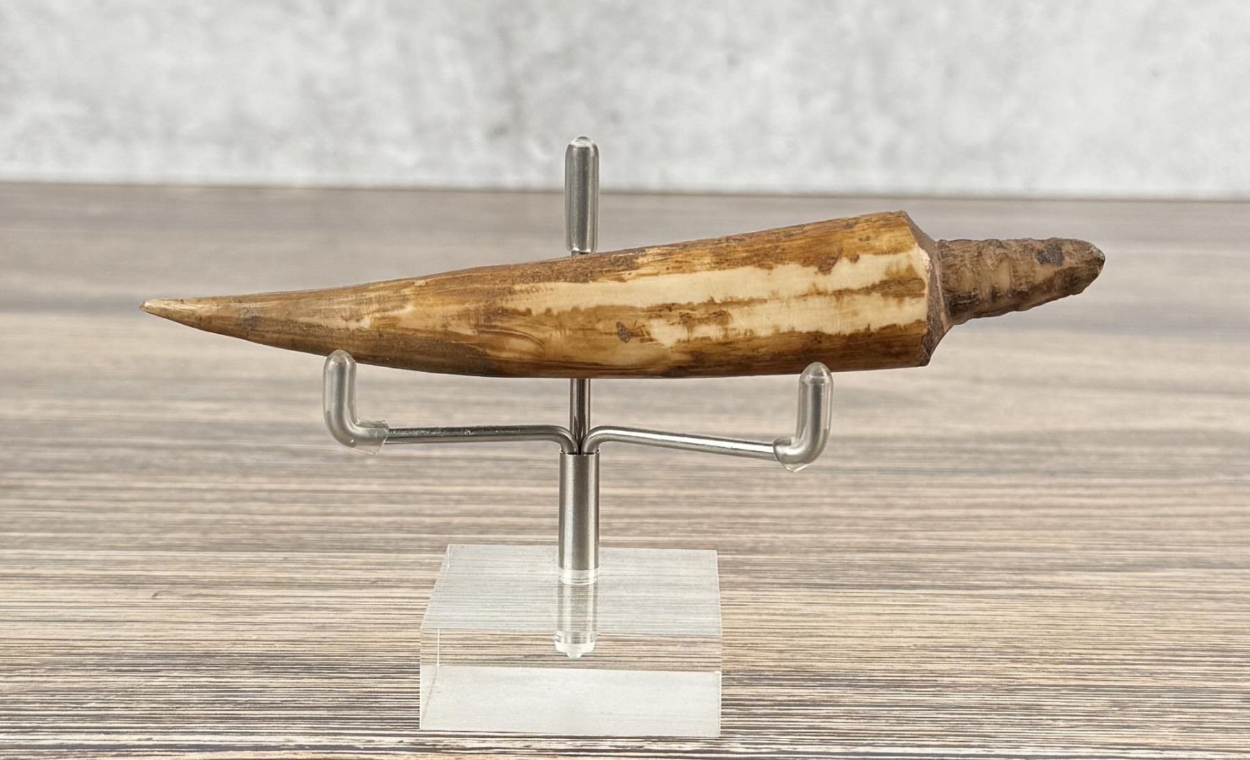 5 1/4" long. Carved walrus material. Native made prior to 1972. This item cannot be shipped to Oregon, California, Hawaii, New York, New Jersey, Internationally, or any other state that prohibits.