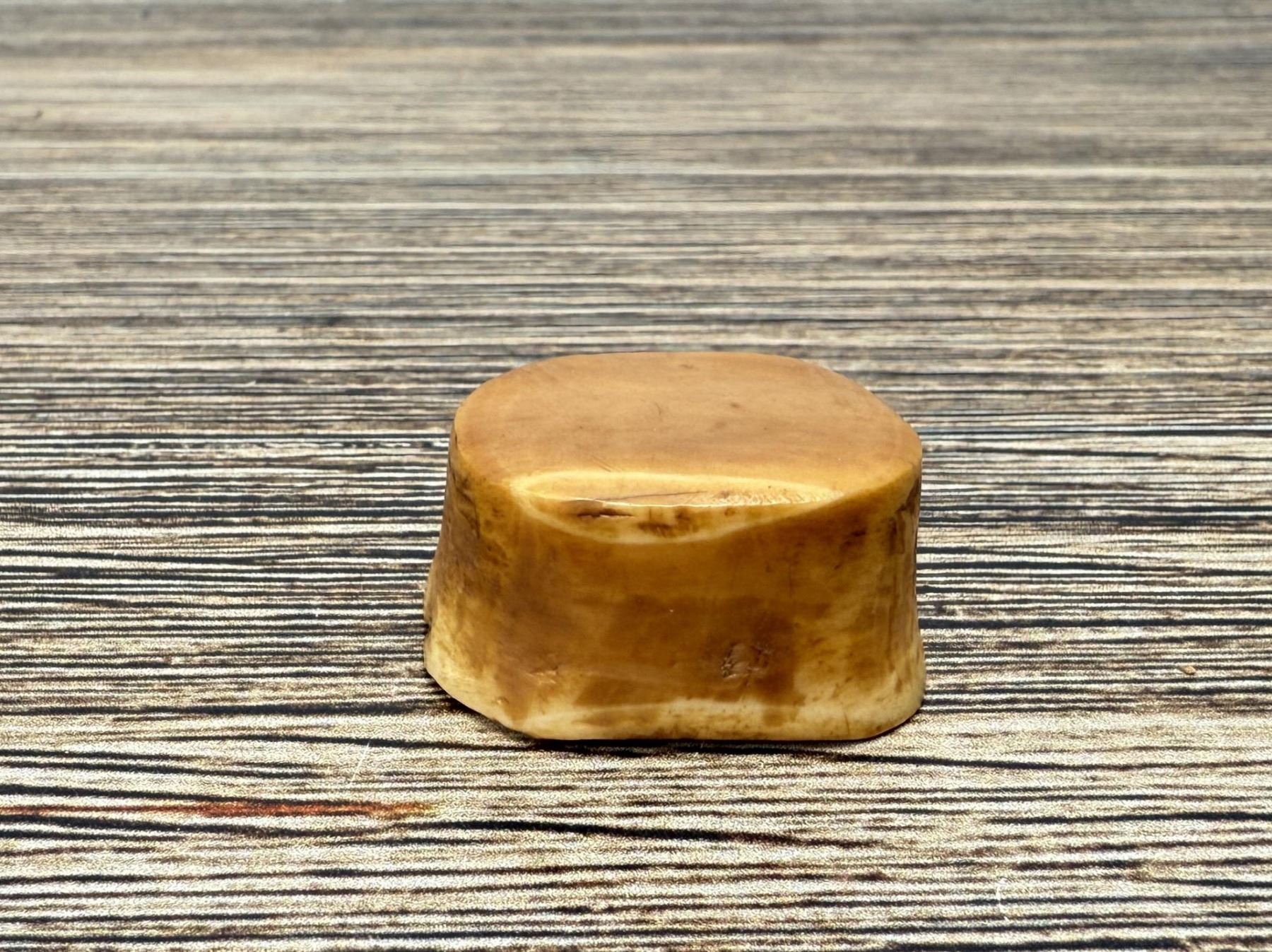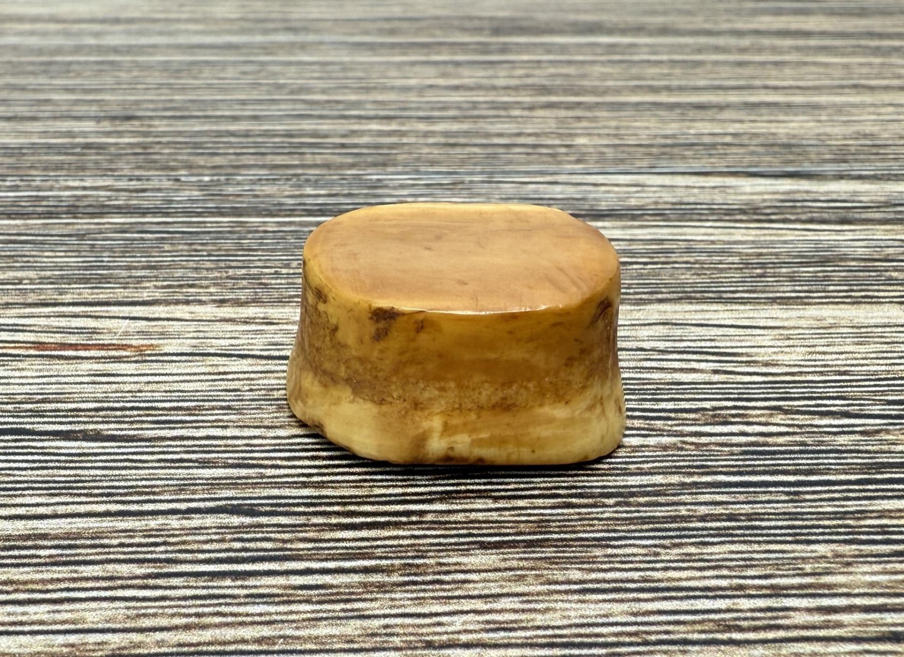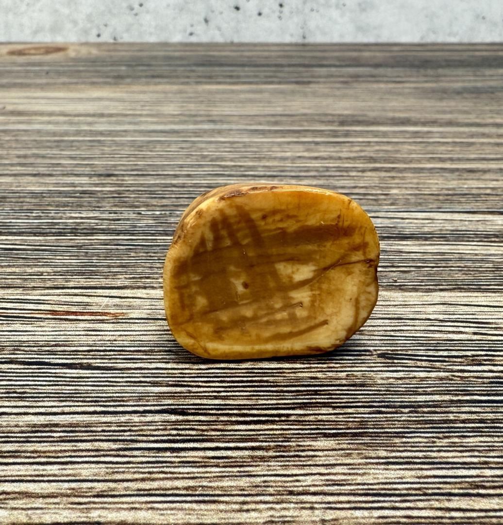 1 1/8" by 1" by 1/2". Carved walrus material. Native made prior to 1972. This item cannot be shipped to Oregon, California, Hawaii, New York, New Jersey, Internationally, or any other state that prohibits.