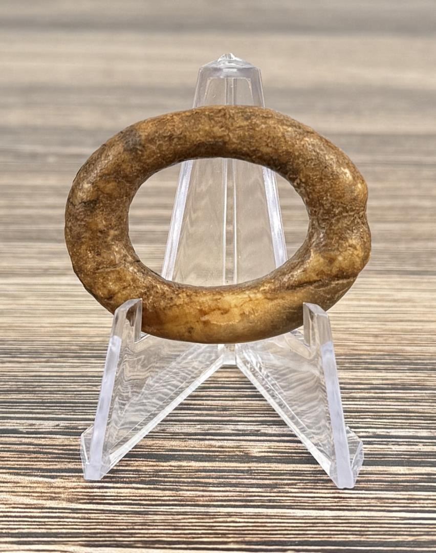 1 3/4" by 1 1/2". Carved walrus material. Native made prior to 1972. This item cannot be shipped to Oregon, California, Hawaii, New York, New Jersey, Internationally, or any other state that prohibits.