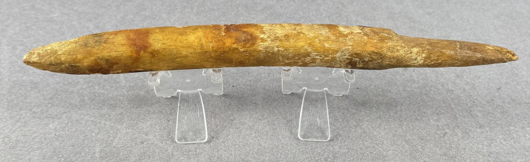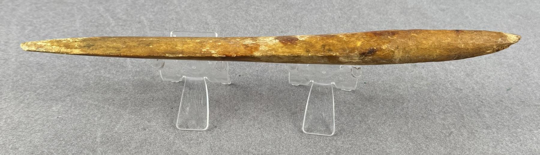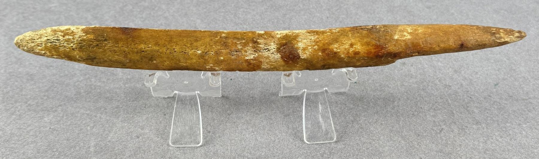 11 3/4" long. Carved walrus material. Native made prior to 1972. This item cannot be shipped to Oregon, California, Hawaii, New York, New Jersey, Internationally, or any other state that prohibits.