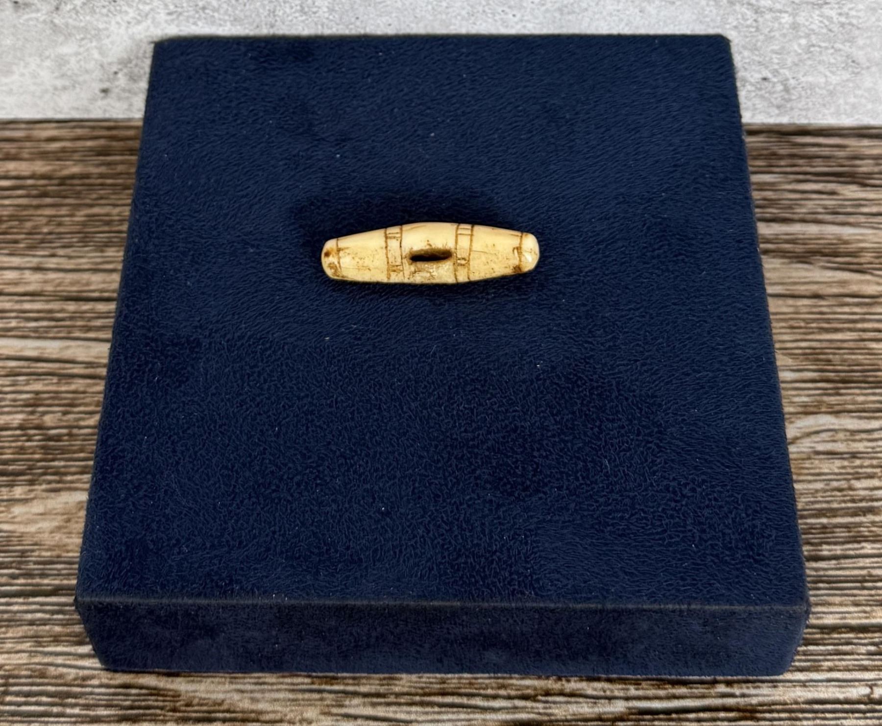 1 1/4" long. Carved walrus material. Native made prior to 1972. This item cannot be shipped to Oregon, California, Hawaii, New York, New Jersey, Internationally, or any other state that prohibits.