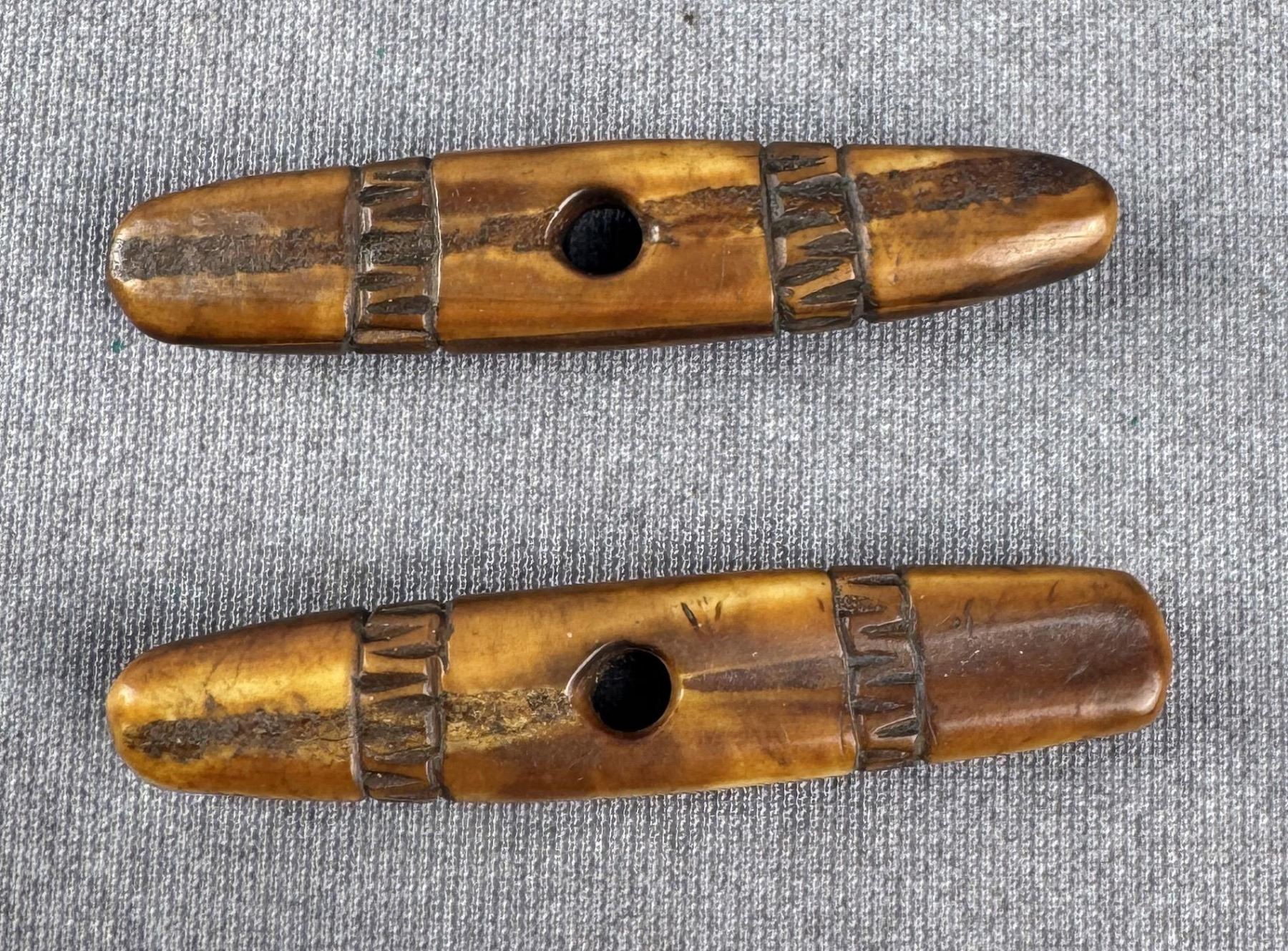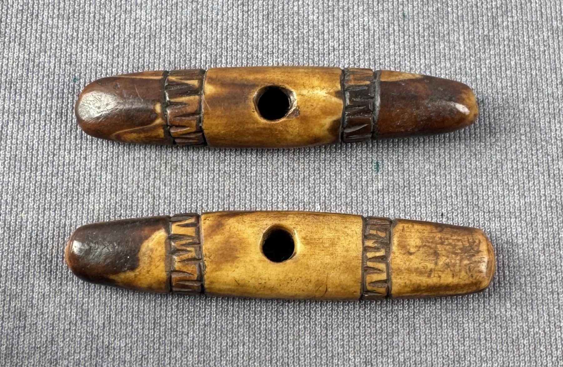 Carved walrus material. Native made prior to 1972. This item cannot be shipped to Oregon, California, Hawaii, New York, New Jersey, Internationally, or any other state that prohibits.