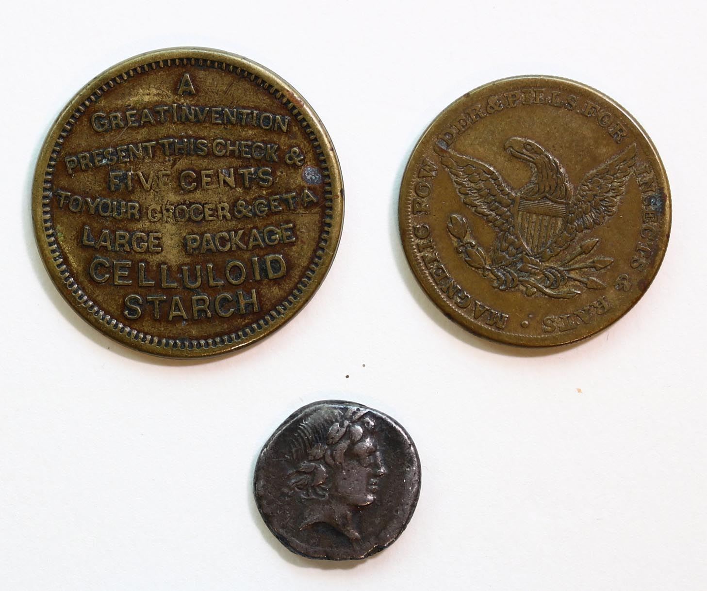 Ancient & USA Tokens; Lot of 3 pieces. VG to VF.