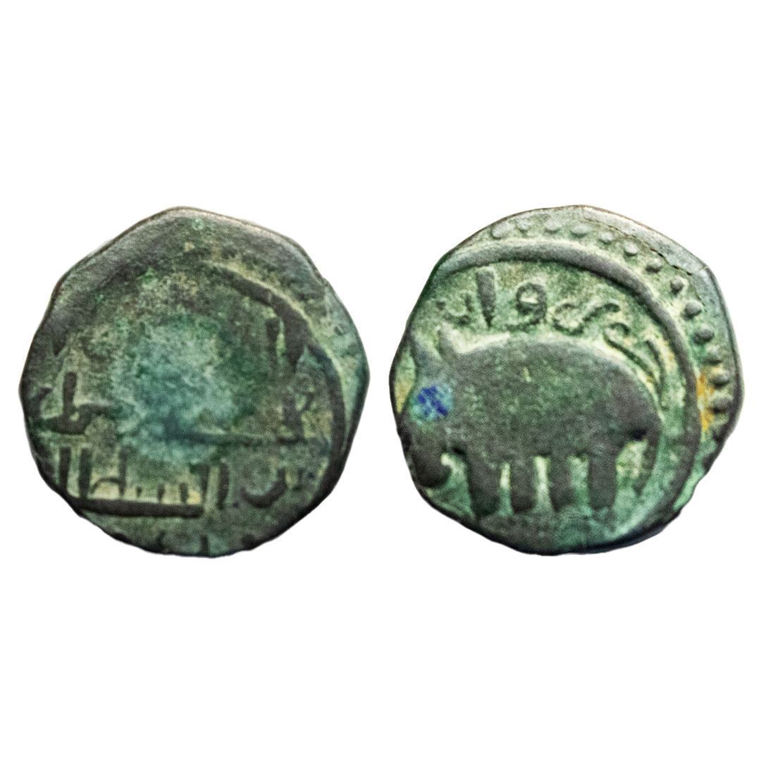 Ancient World, Ala al-Din Muhammad Shah Jurzwan (AH 596-617), Copper Jital, 2.48Grms, Obv: Elephant without rider facing to left side, Rev: Arabic legend.