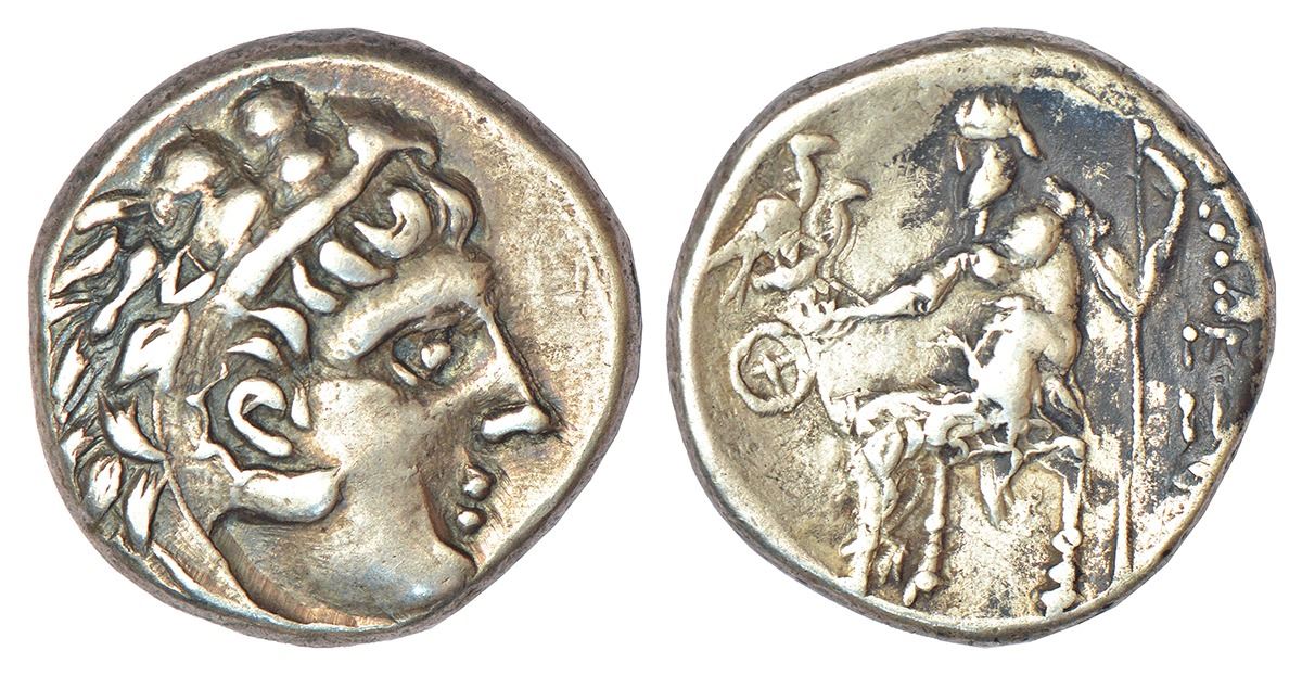Greek World, Eastern (Danubian) Celts, uninscribed silver tetradrachm, imitating Alexander-III the Great's design from the Mint of Amphipolis (3rd-2nd century BC), 16.97g. Obv: Head of young Herakles right in lion skin headdress. Rev: Zeus enthroned left, holding eagle and scepter, monogram in left field; Greek legend ΑΛΕΞΑΝΔΡΟΥ (in garbled script) partly visible.