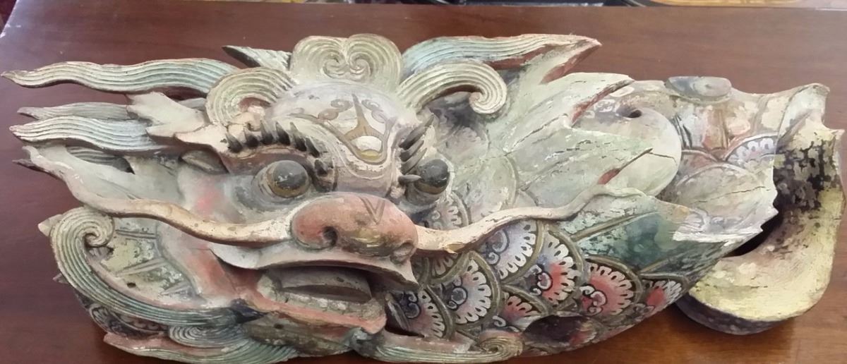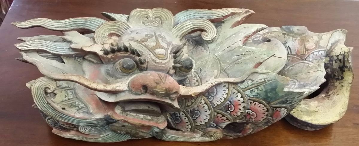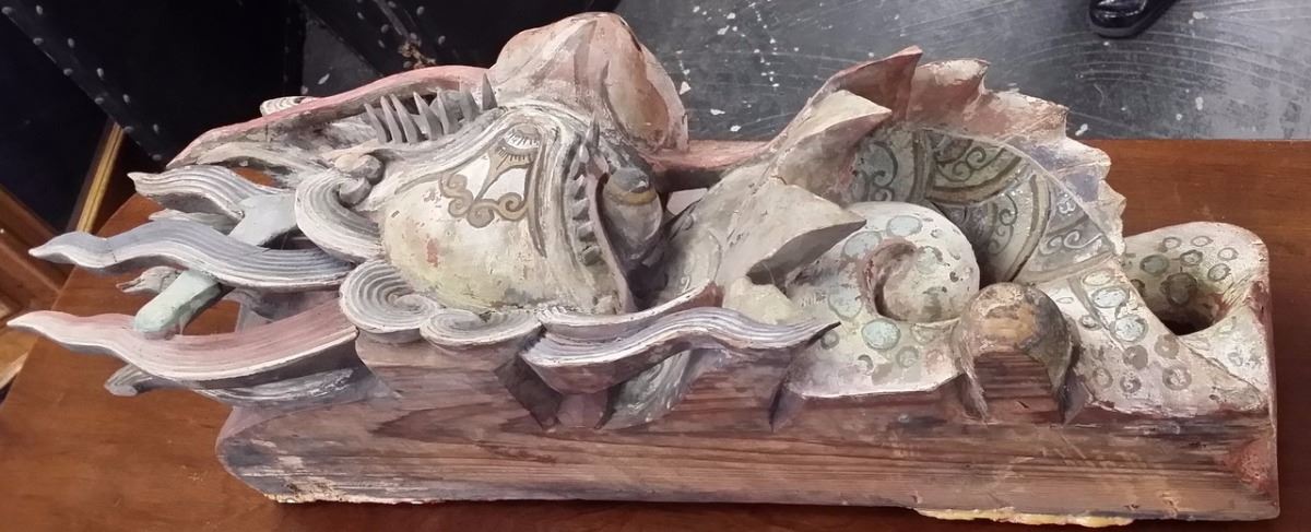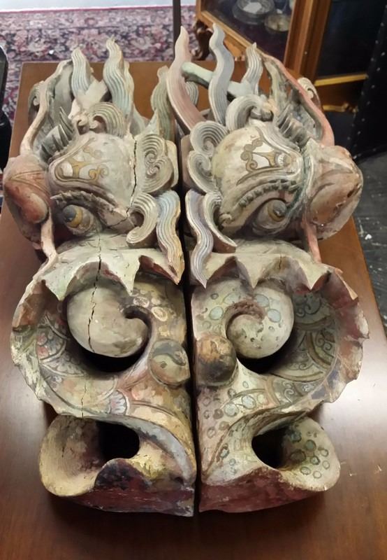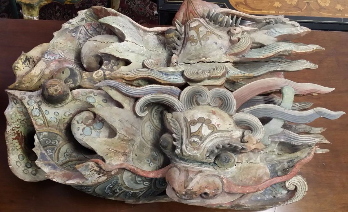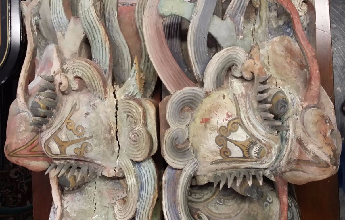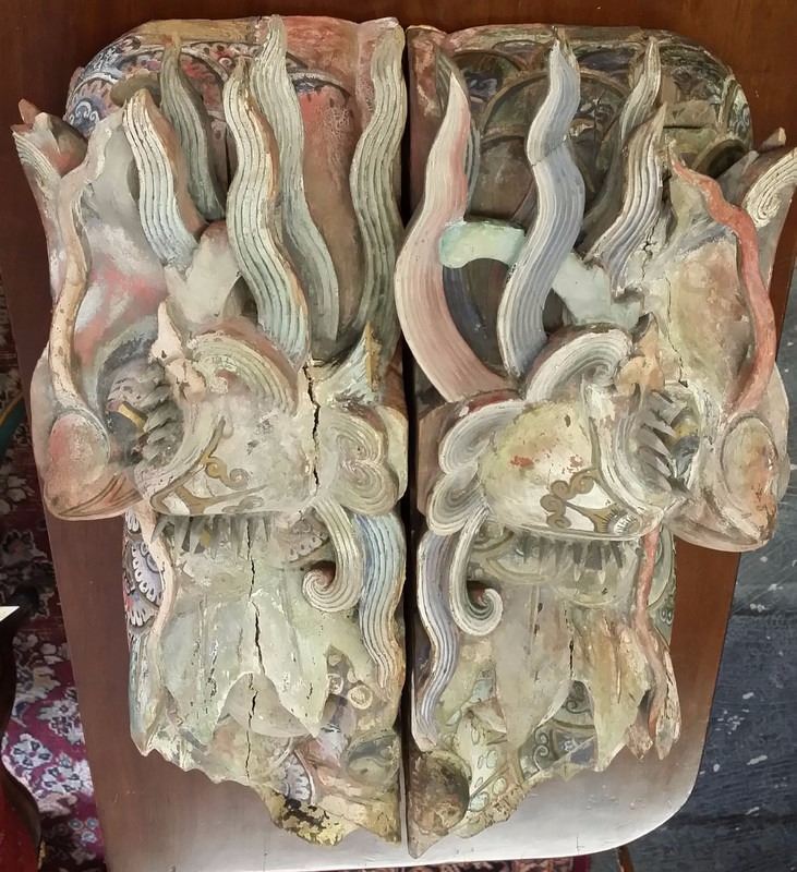 Ancient Circa 1750 maybe even older Chinese Poly-Chromed Wood Carvings Lung Temple Protectors/Guards