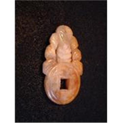 Sung period yellow jade carving featuring a man with fox face holding giant cash coin. Estimated value: $600. Provenance: Dr. Veleanu's jade collection, the author of the textbook: "Jade, 5000 BC to 1912 AD, Guide to collectors". Estimated value: $600.