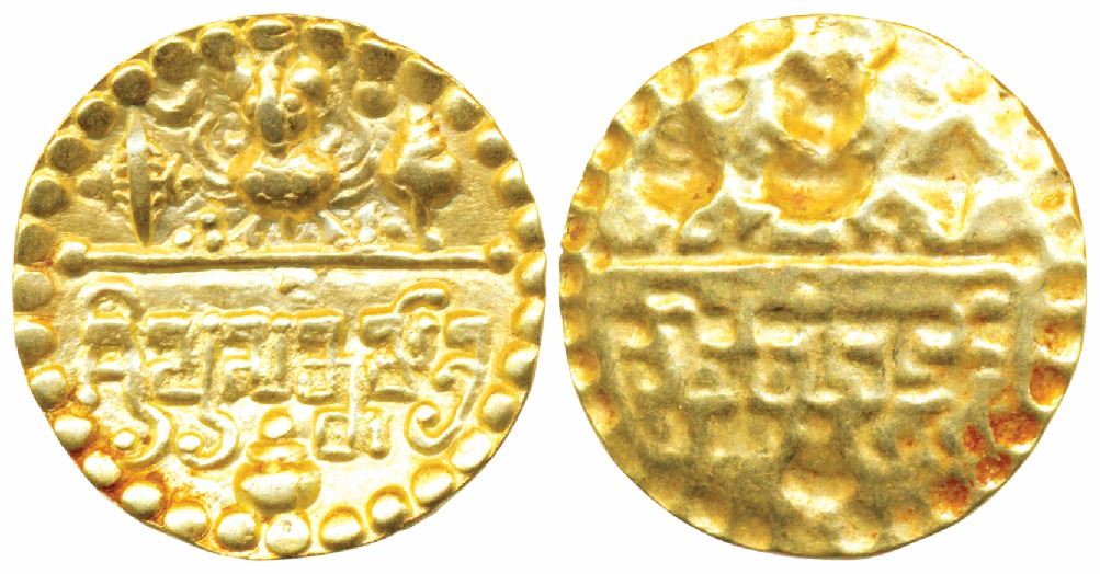 Sarabhapurias of Chhattisgarh, Prasannamatra (c. 525-550 AD), Gold Repousse, Bracteate Dinar, 1.23g, obv. Garuda flanked by shankha and charka with Brahmi legend Sri Prasannamatra below, Uniface. Extremely Fine, Scarce.