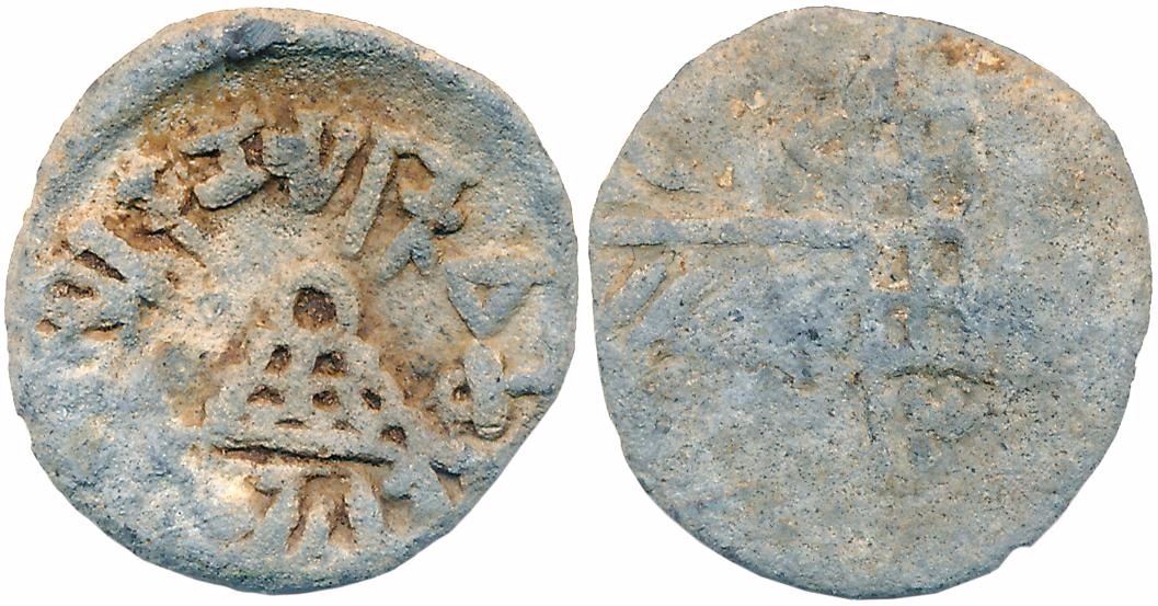 Sivalananda, Lead, 4.67g, Obv: Six arched hill, river below, Brahmi legend around, Rev: Tree in railing. Very fine, scarce.