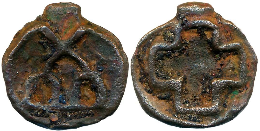 Deccan, Uninscribed, Cast Copper, 4.54g, Obv: Three arched Hill, Crescent above, Rev: Hollow cross (Piper# 527). Very fine.