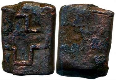 Ancient Deccan, Uninscribed Punch Marked, Copper, 7.04g, Uniface, Hollow cross on obverse. Very fine.