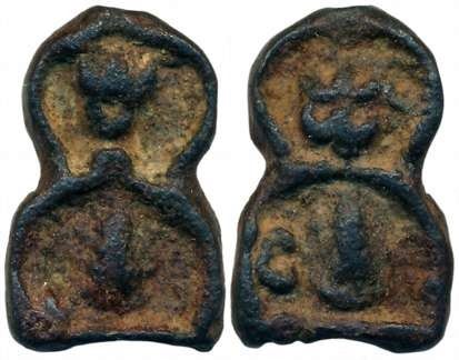 The tradition of casting coins in different shapes has been known from certain regions in the North – there is a series of cast copper coins of ‘Damaru’, diamond, semi-circle etc shapes known from Kaushambi. However intentionally fashioning coins in a shape that was of a reverential symbol appears to have been a practice confined to the West and the South. This coin is of an extremely rare type, which is shaped like the holy symbol of Nandipada or taurine. The symbol, originally perhaps of a bovine significance was later taken up by the Buddhists to denote the ‘three jewels’ – Buddha, Dharma and Sangha – of their faith. There is hardly any comparison to this unique shape in the broad range of early uninscribed cast copper coins.