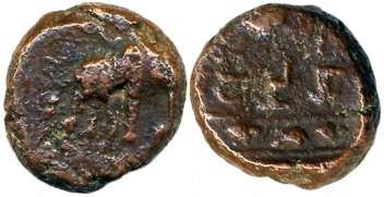 City State Ujjaini, Inscribed Copper, 4.45g, Obv: Brahmi legend “(U)jeniya” between a row of three symbols (partly visible) and a river symbol with fishes and turtles, Rev: Elephant walking to right, traces of Ujjain symbol above (Kothari RB#1). Very fine, very rare.