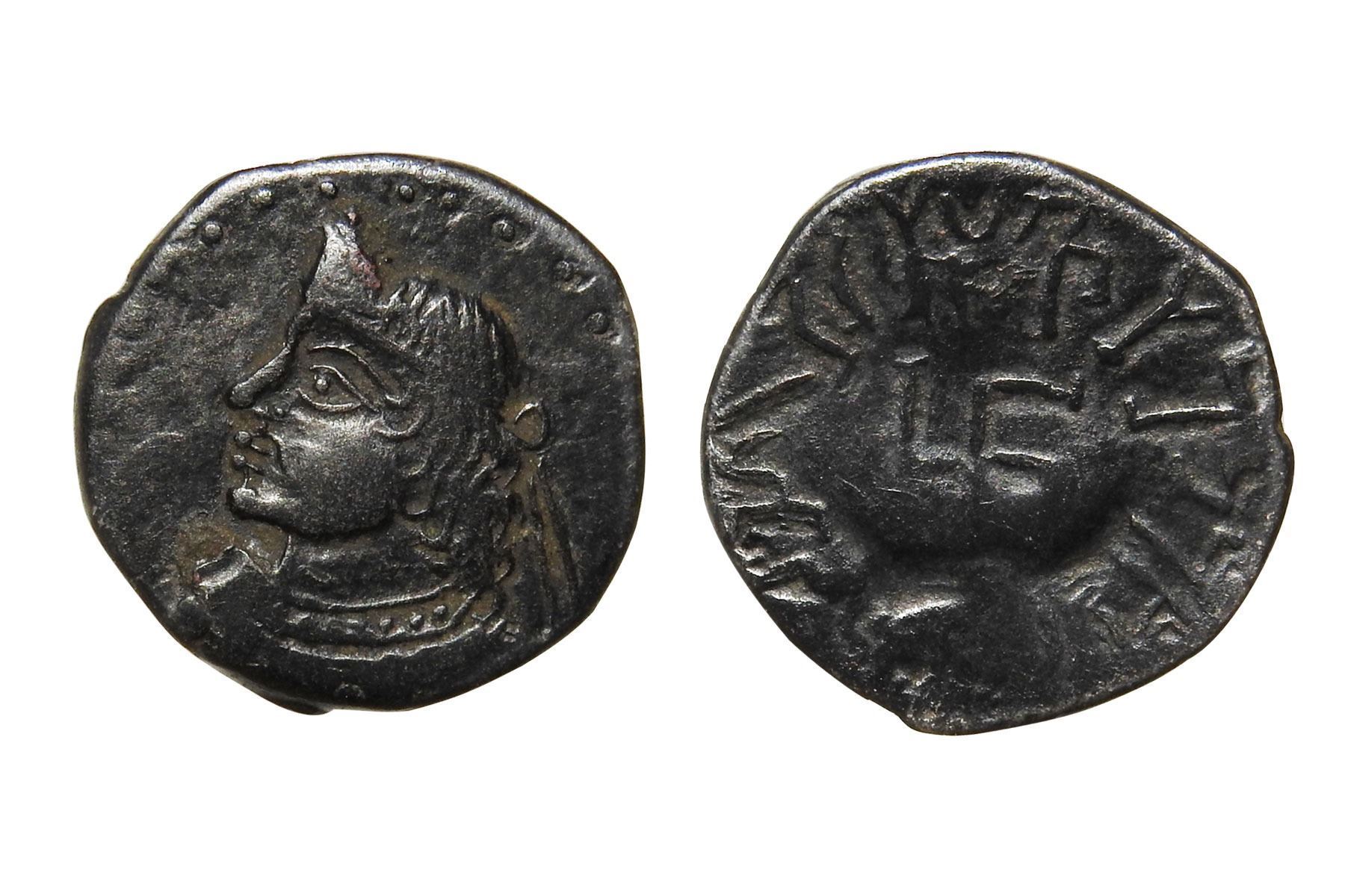 Paratarajas of Sindh and Baluchistan – King Bhimarjuna (c. 220-235 CE), Billion Drachm, 2.20 grams, Obv: