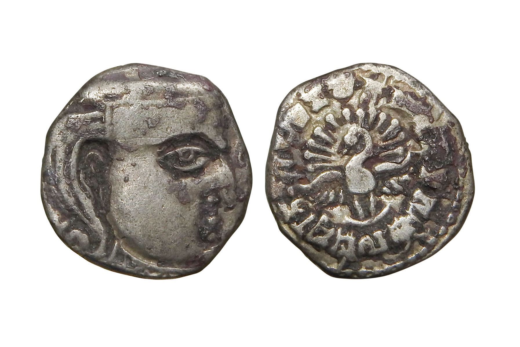 Madhyadesha Type), 2.10 grams, Obv: Exceptionally detailed bust of the king facing right.