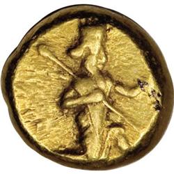<B>Achaemenid Kingdom. Darios I to Xerxes I.</B></I> Ca. 485-420 B.C. AV daric (14 mm, 8.37 gm). Persian king or hero in kneeling-running stance right, holding spear and bow / Incuse punch. Carradice IIIb, A/B. Near VF. <BR><BR><b>Shipping:</b> Coins & Currency (<a target="_blank" href="http://www.heritageauctions.com/common/shipping.php">view shipping information</a>)
